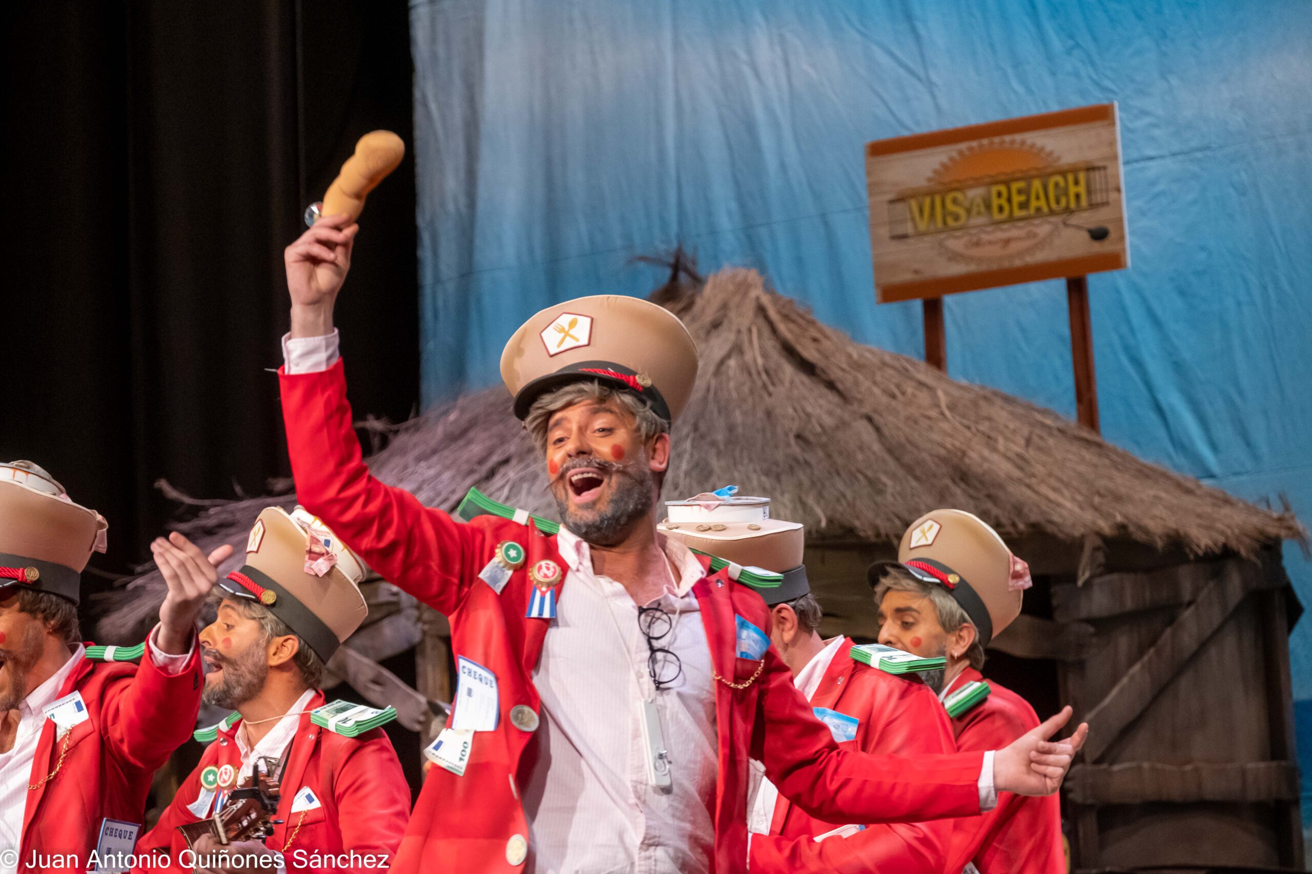 Los cuplés también fueron efectivos, aunque no alcanzaron la misma intensidad que los pasodobles. En uno de ellos, la comparsa hizo humor sobre una situación cómica de amor a través de Tinder, mientras que en el otro, se abordó la feroz competencia entre comparsas y la alta exigencia de la modalidad.