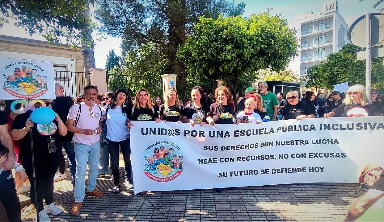 La protesta, impulsada por familias de Jerez de la Frontera, forma parte de un movimiento que, según los convocantes, se ha extendido a otros puntos de Andalucía en defensa de una atención adecuada y suficiente para este alumnado. Las familias reclaman mayor dotación de personal especializado y recursos estables en los centros educativos públicos.