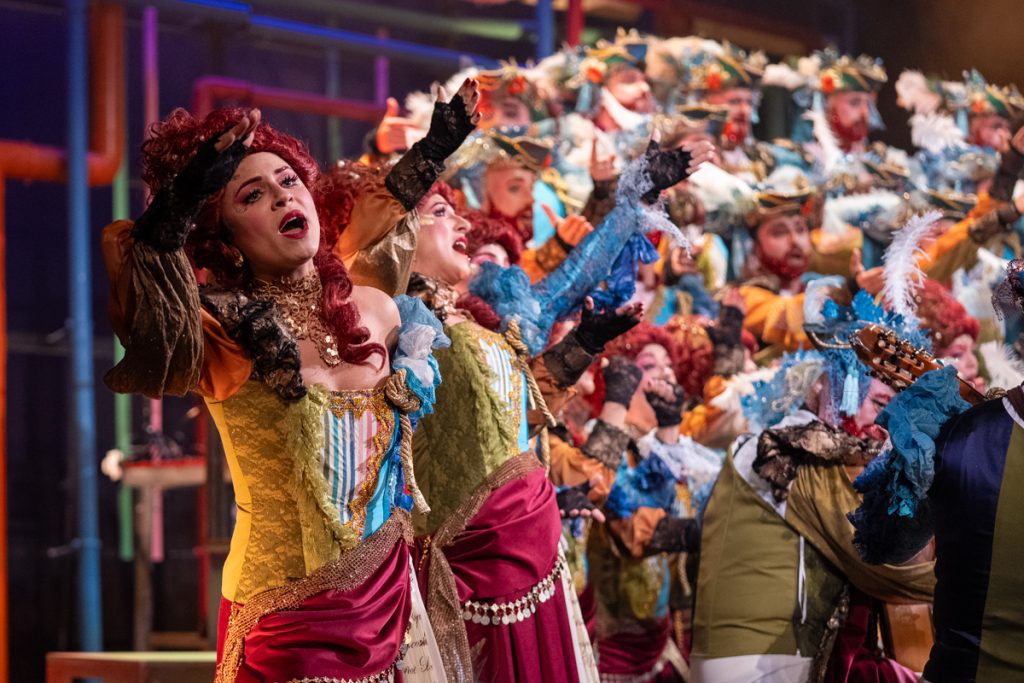 Desde la presentación, el coro impone presencia. El arranque confirma el buen estado vocal del conjunto, con un sonido compacto y bien equilibrado, que llena el teatro sin estridencias. La puesta en escena acompaña con sobriedad, reforzando el concepto sin robar protagonismo al conjunto coral. No se busca el golpe inmediato, sino establecer una base firme desde la que desarrollar el repertorio.
