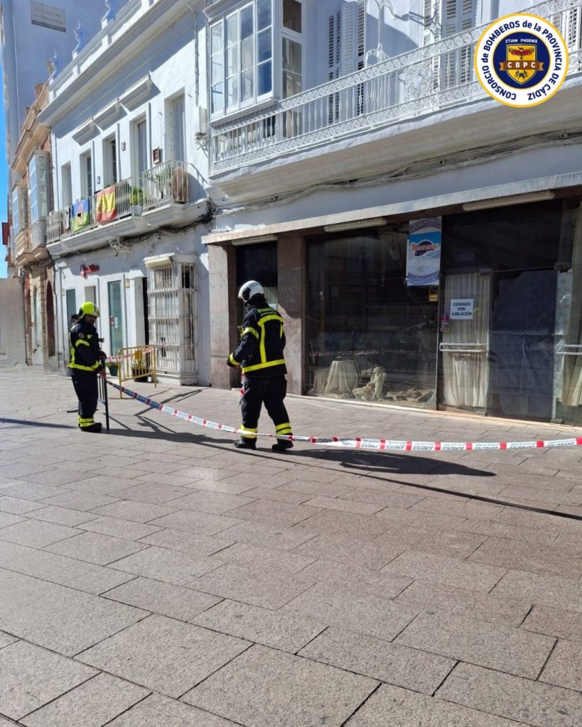Bomberos acordonan un local de la calle Real tras la caída del techo sin causar heridos en San Fernando