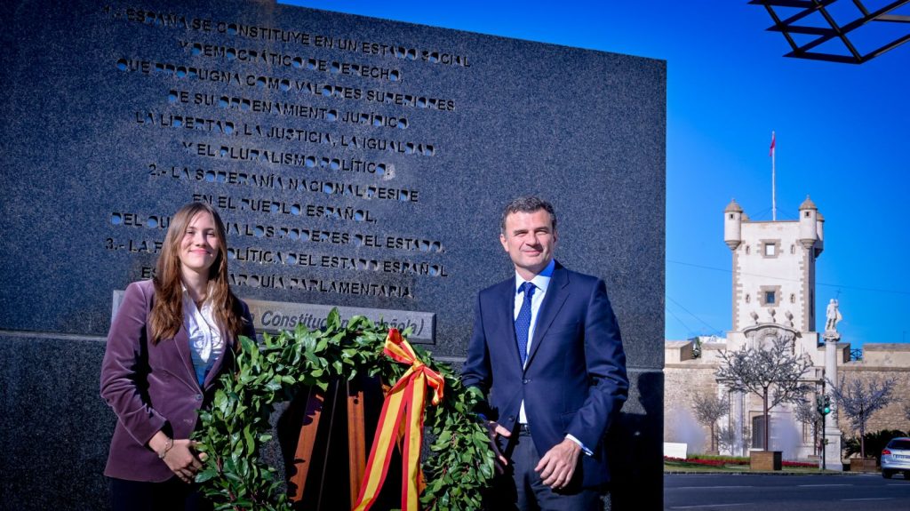 Tras su intervención, se llevó a cabo la colocación de una corona de laurel al pie de la escultura que simboliza la Constitución, un gesto de reconocimiento a la norma que rige la convivencia democrática en España desde 1978. En este contexto, el alcalde de Cádiz, Bruno García, destacó el valor histórico del consenso que hizo posible su aprobación. “La Constitución fue fruto de un acuerdo que abrió las puertas a la convivencia, a la democracia y a las libertades que hoy disfrutamos”, afirmó.