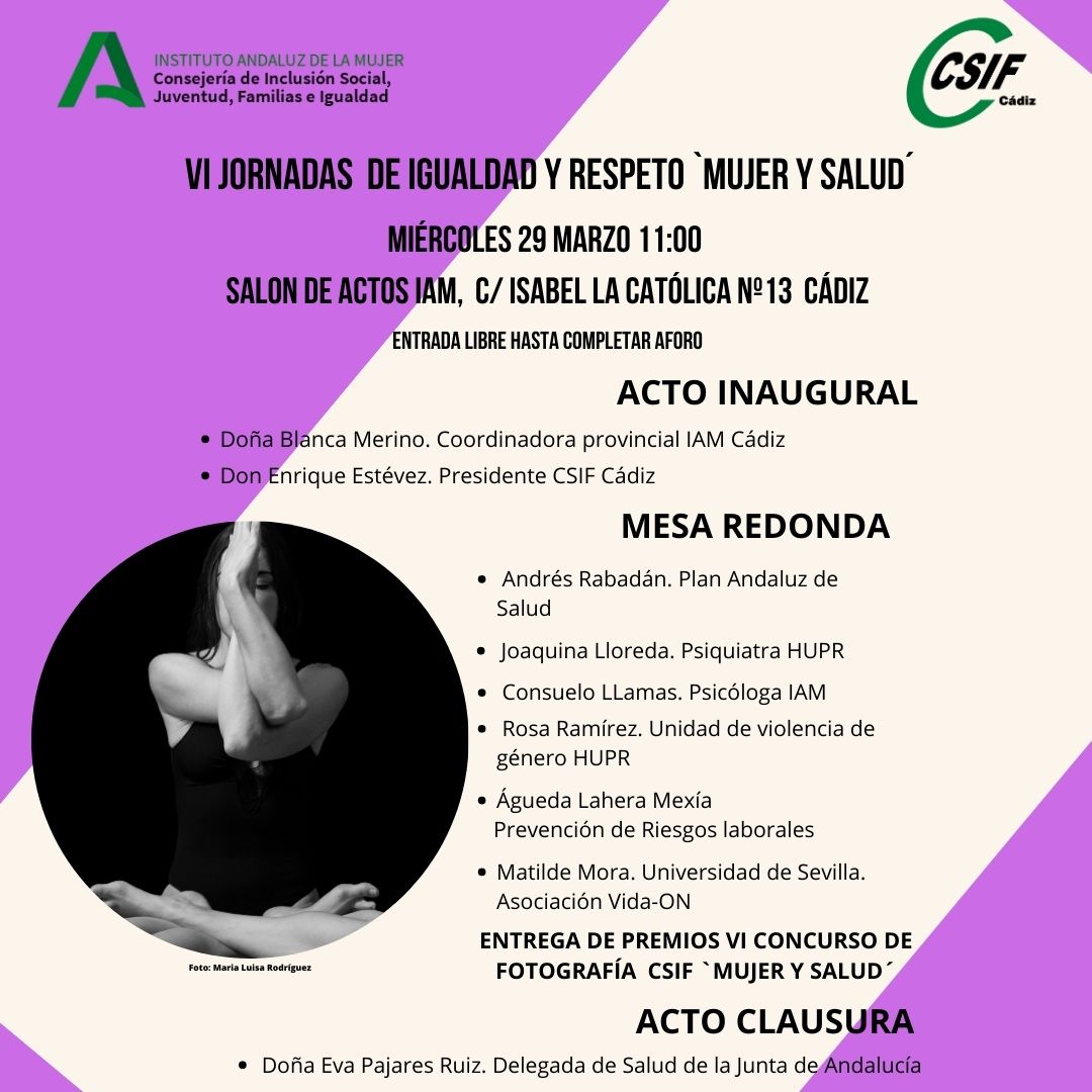 Las VI Jornadas de Igualdad y Respeto de CSIF Cádiz se celebrarán el próximo miércoles, 29 de marzo, en el IAM