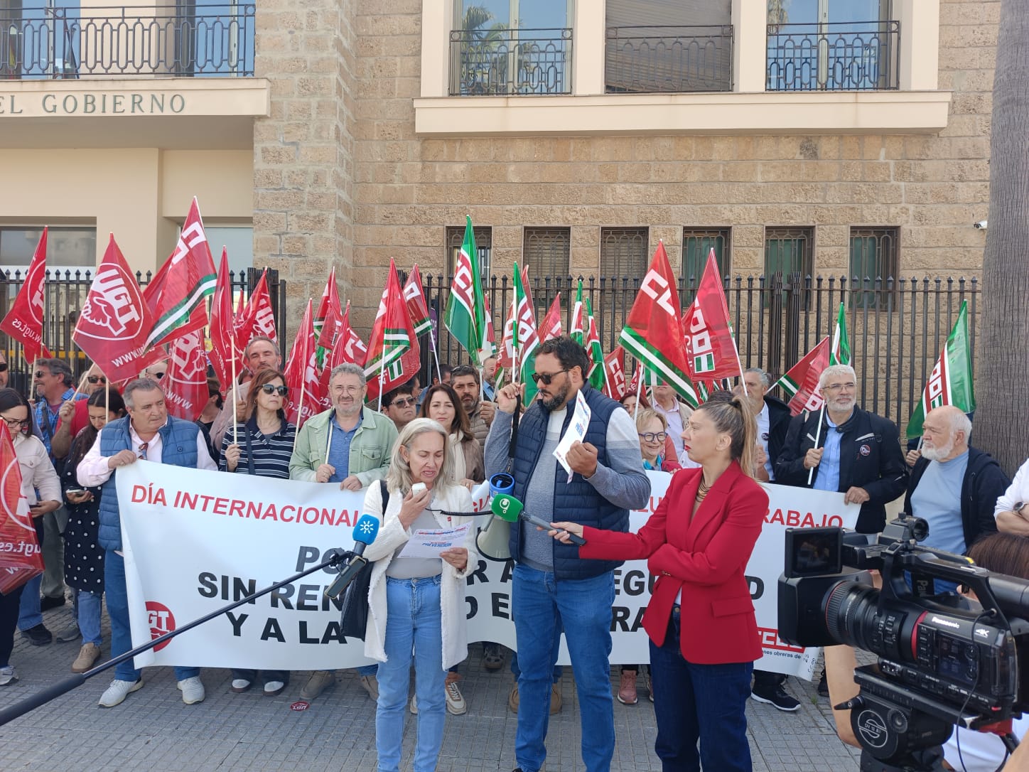 CCOO y UGT se han concentrado este martes, 28 de abril, ante la Subdelegación del Gobierno en Cádiz con motivo del Día Internacional de la Seguridad y la Salud en el Trabajo. La movilización, celebrada a las 11.00 horas, ha tenido como objetivo denunciar la siniestralidad laboral en la provincia y reclamar medidas para reforzar la prevención en las empresas.