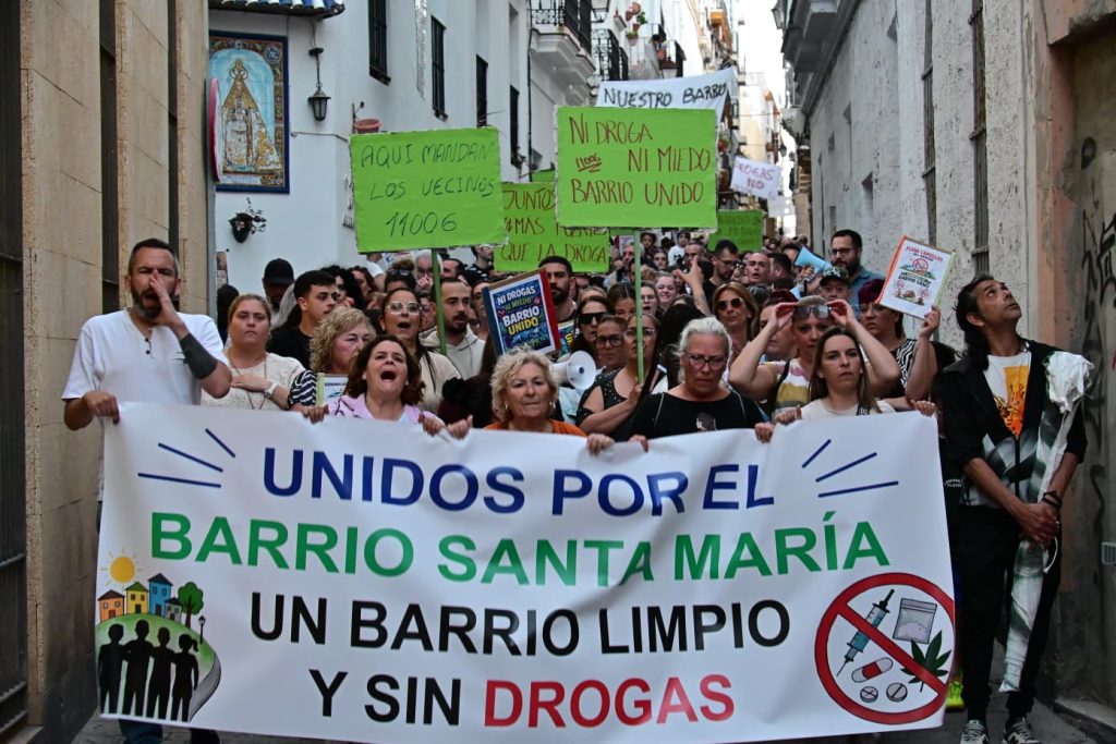Cerca de un millar de personas se manifestaron en el barrio de Santa María, en Cádiz, para reclamar soluciones ante el aumento del tráfico y consumo de drogas en la zona. La movilización, convocada por la asociación vecinal Las Tres Torres, reunió a residentes del barrio junto a participantes llegados de otros puntos de la ciudad.