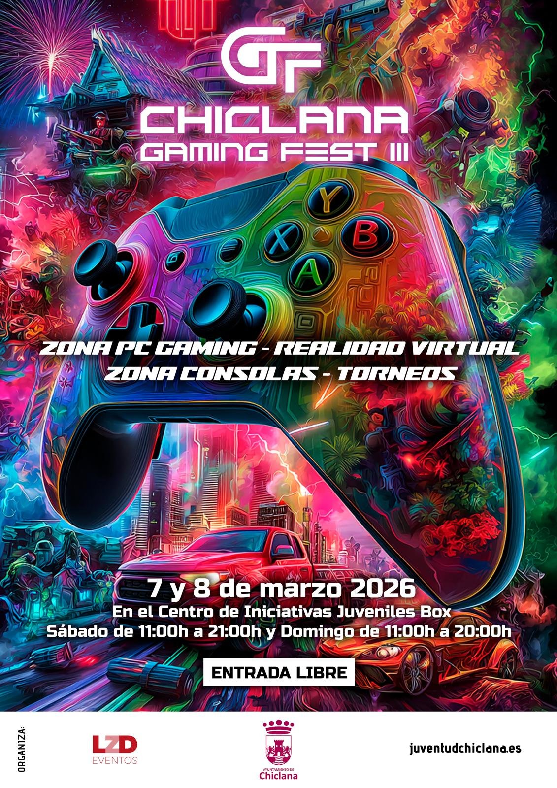 El Centro de Iniciativas Juveniles Box y el Hub Digital acogerán este fin de semana el Chiclana Gaming Fest III, un evento dedicado al mundo de los videojuegos que se desarrollará el sábado 7 y el domingo 8 de marzo en Chiclana. La entrada será gratuita hasta completar aforo.