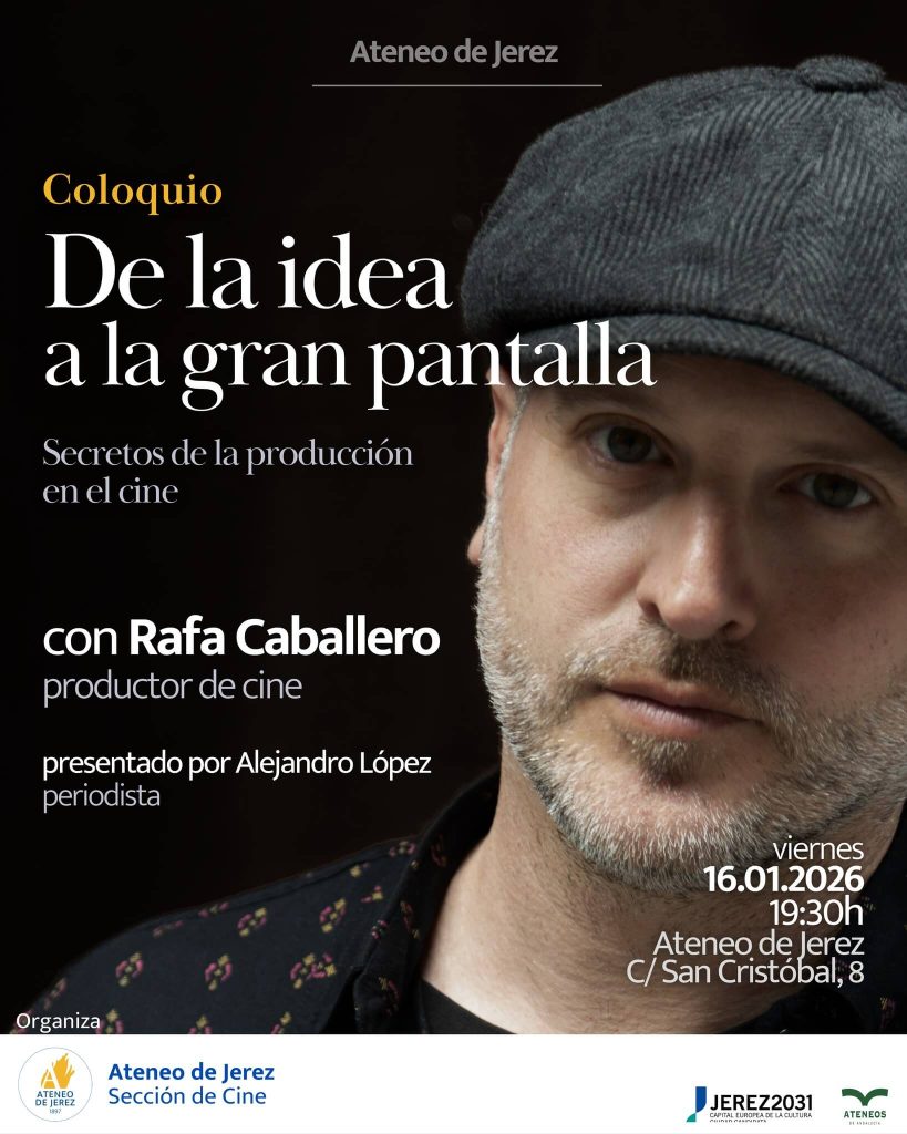 El Ateneo de Jerez celebrará el próximo viernes 16 de marzo el coloquio “De la idea a la gran pantalla”, un encuentro dedicado a la producción cinematográfica que contará con la participación del productor jerezano Rafael Caballero. La cita está prevista a las 19:30 horas en la sede de la institución, situada en la calle San Cristóbal 8, y la entrada será libre hasta completar aforo.