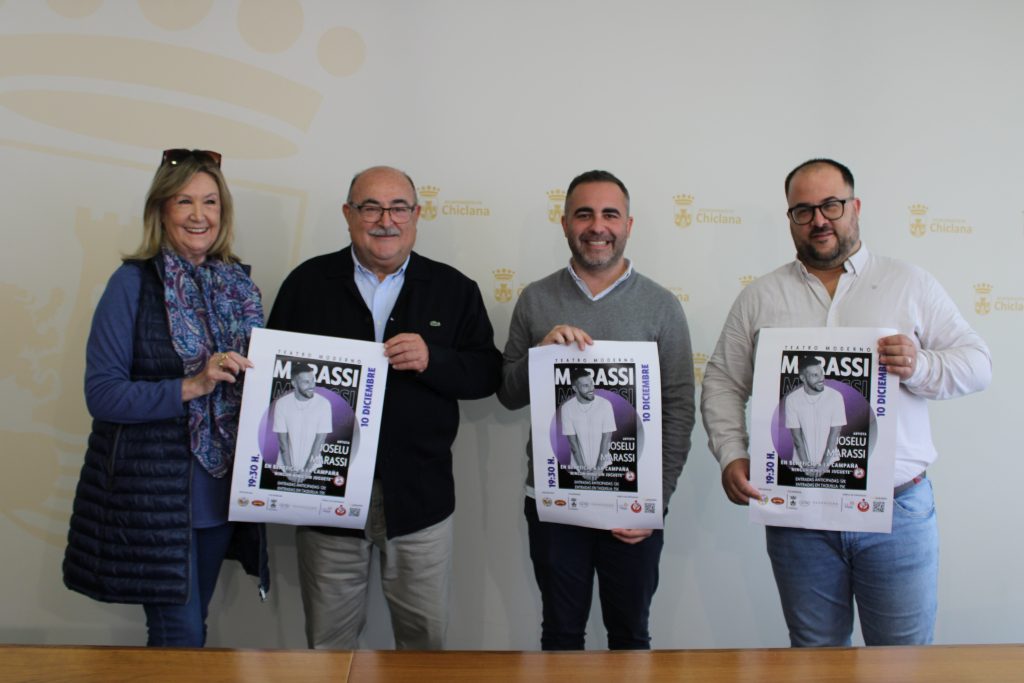 La Hermandad de la Borriquita celebrará el próximo 10 de diciembre, a partir de las 19:30 horas en el Teatro Moderno, un concierto benéfico del artista isleño Joselu Marassi a favor de la campaña solidaria ‘Ningún Niño sin Juguetes’ de la Asociación de Reyes Magos de Chiclana. La iniciativa ha sido presentada por el delegado municipal de Fiestas, Fede Díaz, acompañado por el hermano mayor de la Hermandad, Juan Antonio Torrejón, y el presidente y la vicepresidenta de la Asociación de Reyes Magos, Juan Jesús Sánchez y Juani Verdugo.