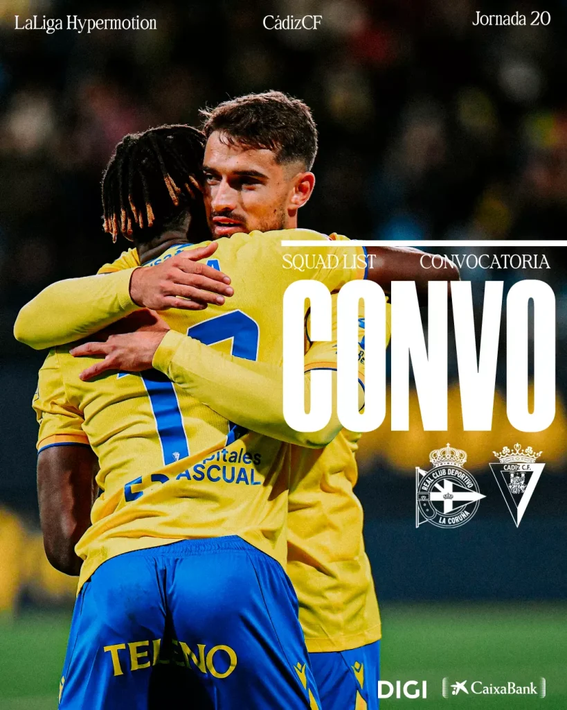 La afición cadista estará pendiente de este encuentro, en el que el equipo intentará sumar un resultado positivo ante un Deportivo de la Coruña que también afronta el choque con la necesidad de puntos. El Cádiz CF afronta así una nueva jornada de LaLiga Hypermotion con una convocatoria definida y el objetivo de competir al máximo nivel en Riazor.