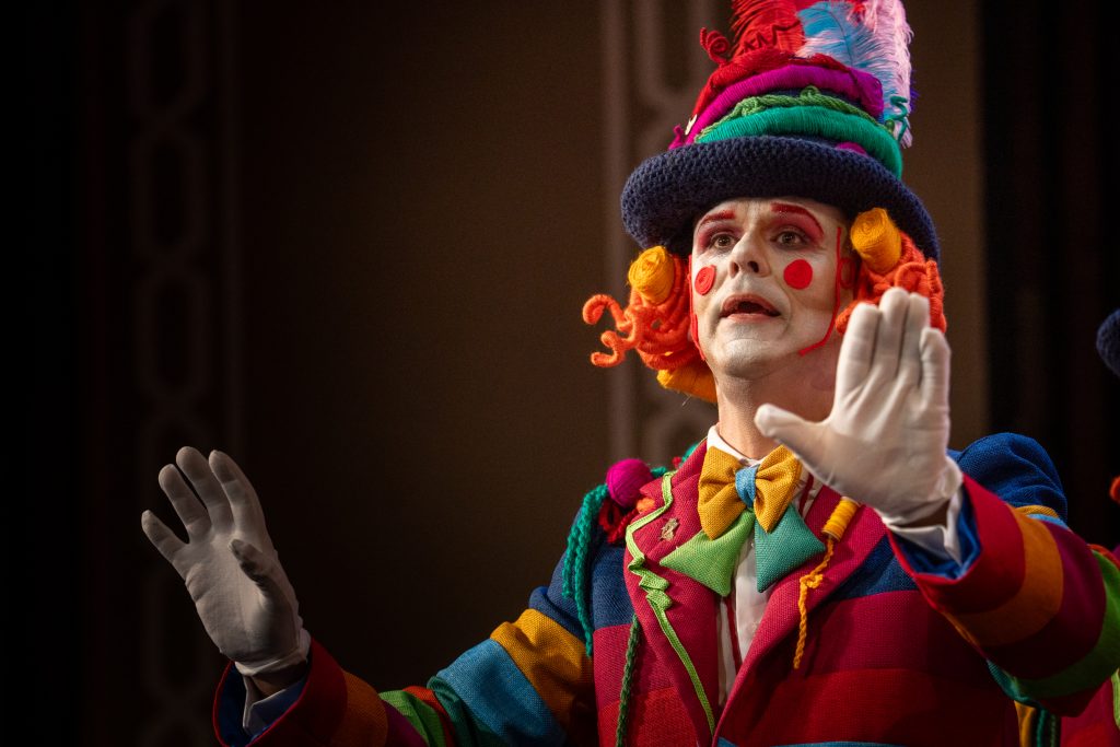 El tipo proponía una alegoría del lío como concepto —una gran bobina de hilo y un forillo repleto de palabras como “justicia”, “pueblo” o “memoria”— mezclando el sentido literal del hilo con la expresión coloquial. La idea apuntaba a una fantasía para “enredar” el mundo, pero la falta de definición hizo que el concepto se fuera diluyendo durante el repertorio, dificultando la lectura escénica y narrativa. La puesta incluía maquillaje tipo payaso y retales de colores, pero no terminó de conectar con la intención letrística.