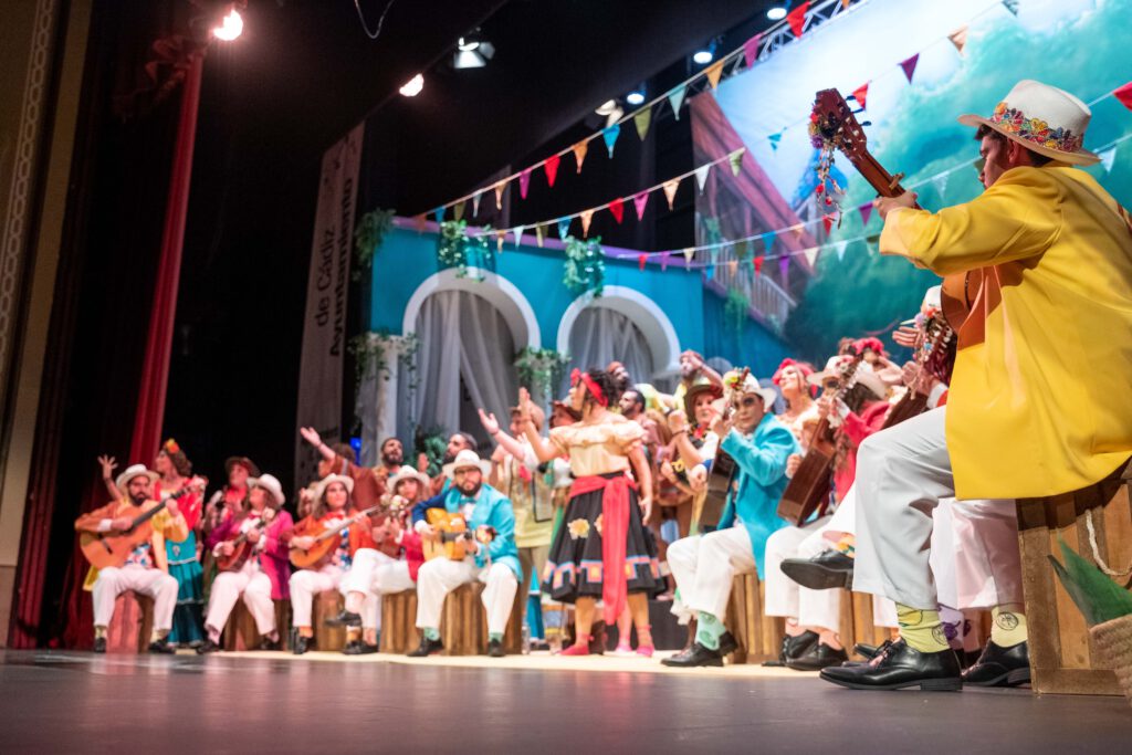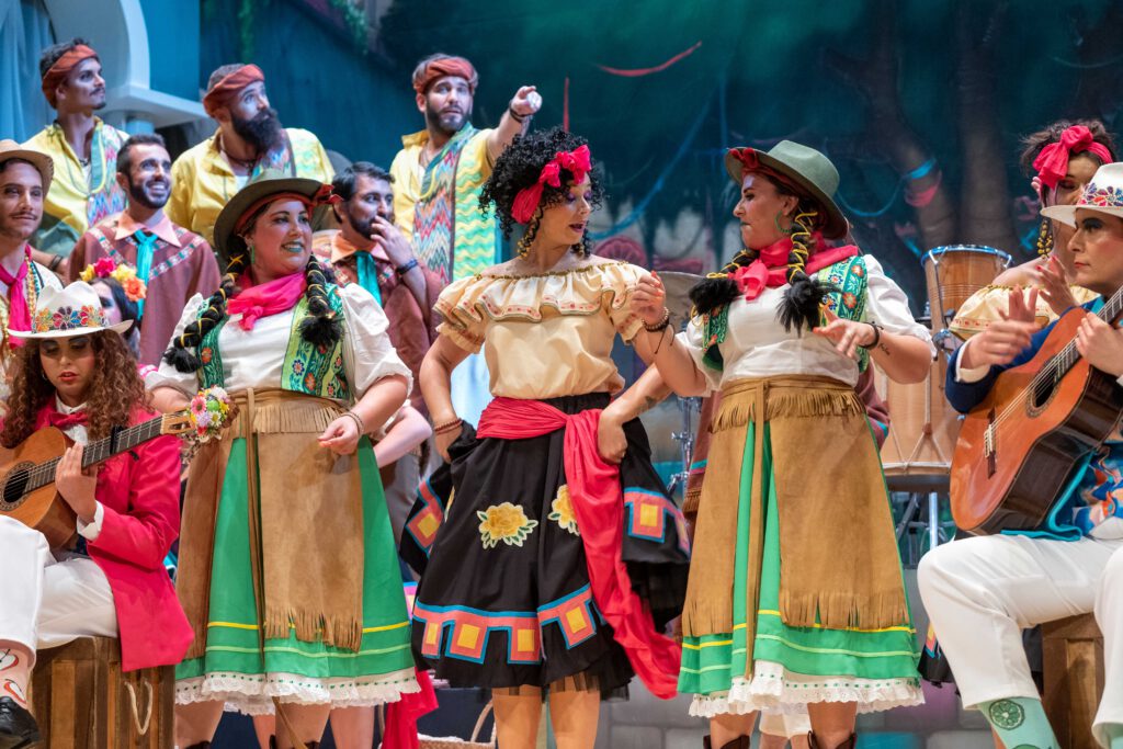 El coro de los estudiantes refrenda con otra gran actuación la buena imagen ofrecida en preliminares. Tras el pase de esta noche son firmes candidatos a estar en la final del viernes. El primer tango, a la brecha digital, se está convirtiendo en el tema estrella de estas semifinales. En el segundo lo dedican al cáncer y cómo afecta desde el punto de vista anímico el apoyo de los que rodean al enfermo. Los cuplés, simpáticos, en el primero confunden los iconos que señalizan el género en los servicios y en el segundo discuten entre ellos por asuntos de pareja.