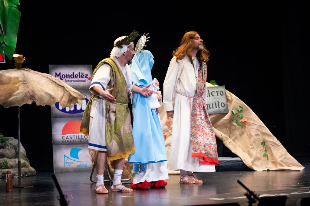 Desde el arranque, el cuarteto establece un pacto claro con el público: no se trata de buscar el golpe inmediato, sino de desarrollar una historia larga, llena de referencias, diálogos y dobles lecturas. El planteamiento parte de la resurrección de Jesús, convertida en excusa narrativa para revisar la actualidad política, social y religiosa desde un punto de vista descaradamente gaditano. El ritmo inicial es pausado, consciente de que el género del cuarteto necesita tiempo para que la parodia se asiente y los personajes respiren.