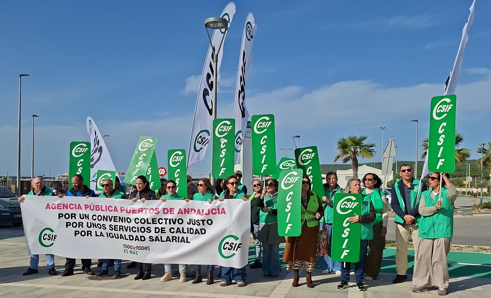 Durante la concentración en el puerto de Barbate, los representantes sindicales también reclamaron la negociación inmediata de un nuevo convenio colectivo. El actual, según indican, fue acordado hace casi 20 años. CSIF sostiene que esta situación mantiene condiciones laborales que consideran desactualizadas, así como diferencias salariales dentro de la plantilla.