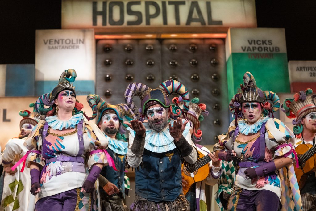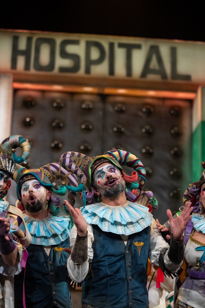El segundo pasodoble cambia el foco sin perder intensidad. La comparsa dedica la copla a la sanidad pública y a sus profesionales, combinando el reconocimiento humano con la crítica al desmantelamiento del sistema. El desarrollo, sólido y emotivo, desemboca en un giro final que conecta directamente con la figura de Manu Sánchez, pregonero del Carnaval, y su experiencia personal como paciente. El remate provoca una respuesta clara del teatro, con el grito unánime de “sanidad pública”, reforzando el carácter colectivo y reivindicativo de la letra.
