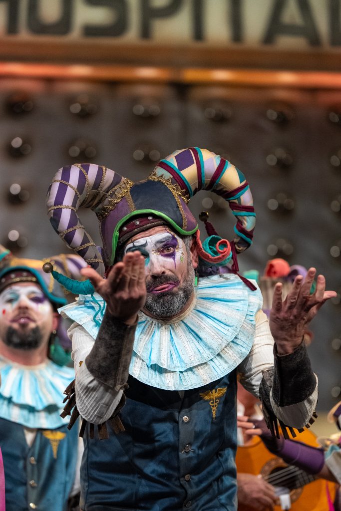 La propuesta no deja lugar a dudas desde la presentación, planteada como una denuncia frontal al deterioro de la sanidad pública. El tipo de bufones medievales, tradicionalmente autorizados a decir lo que nadie se atrevía ante reyes y nobles, funciona aquí como vehículo narrativo y político durante todo el repertorio. El arranque, ejecutado a un ritmo elevado para evitar problemas de tiempo tras la sanción sufrida en preliminares, actúa como declaración de intenciones y sitúa al espectador en el eje central del discurso.
