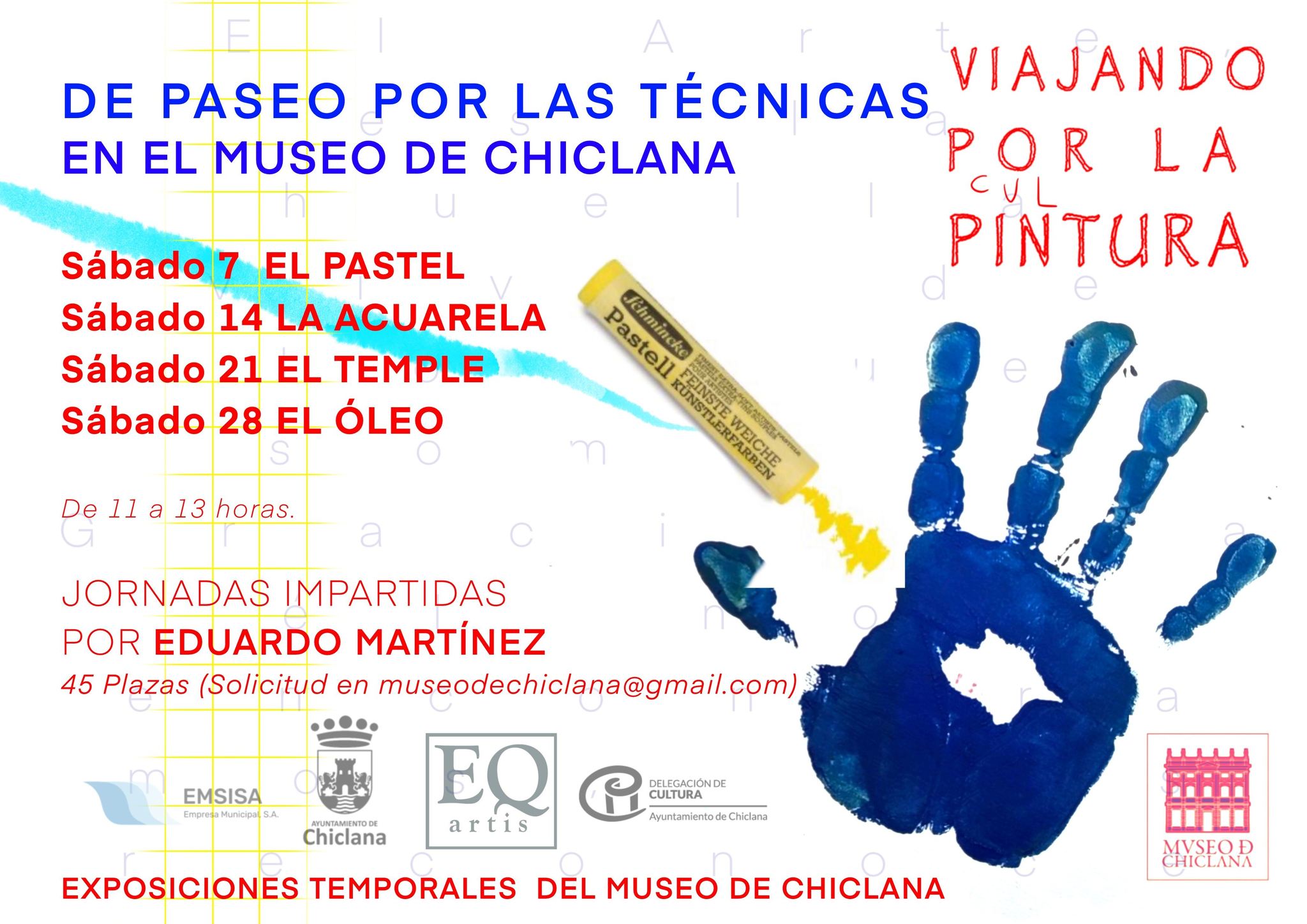 El Museo de Chiclana acogerá a lo largo del mes de febrero un ciclo de jornadas didácticas sobre técnicas de pintura a cargo del artista y docente Eduardo Martínez. Esta iniciativa se enmarca dentro de la programación paralela a la exposición ‘Viajando por la Pintura’, del colectivo de artes plásticas EQartis, que se inauguró el pasado 19 de diciembre en las instalaciones municipales de la Plaza Mayor.