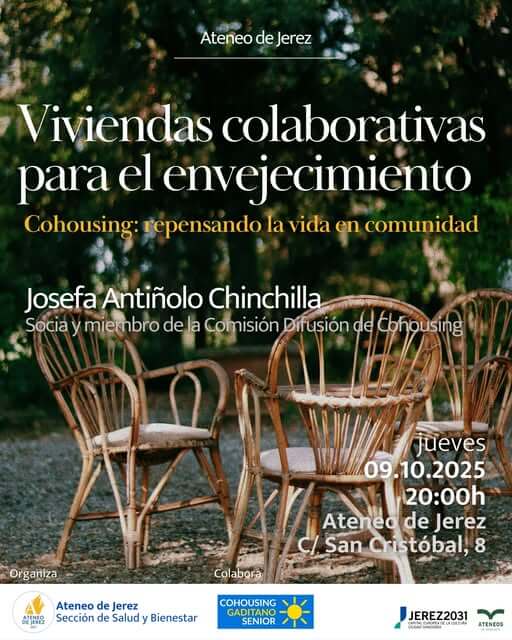 El Ateneo de Jerez celebra este jueves, 9 de octubre, una conferencia dedicada al modelo de viviendas colaborativas, una fórmula residencial que promueve el envejecimiento activo en comunidad y que gana cada vez más interés en Andalucía. Bajo el título “Viviendas colaborativas para el envejecimiento. Cohousing: repensando la vida en comunidad”, el encuentro tendrá lugar a las 19:30 horas en la sede del Ateneo, situada en la calle San Cristóbal, 8. La entrada será libre hasta completar aforo.