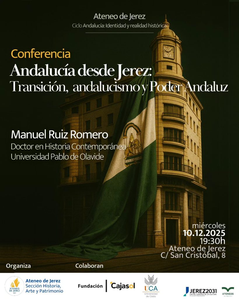 La conferencia profundizará en el papel que ha desempeñado Jerez en la historia reciente de Andalucía, especialmente en tres ámbitos fundamentales: la Transición democrática, el auge del andalucismo político y la configuración del poder andaluz. Ruiz Romero, doctor en Historia Contemporánea y especialista reconocido en la Transición española y el proceso autonómico andaluz, ofrecerá una visión contextualizada sobre cómo la ciudad ha contribuido a la evolución política, cultural y social de la comunidad autónoma.