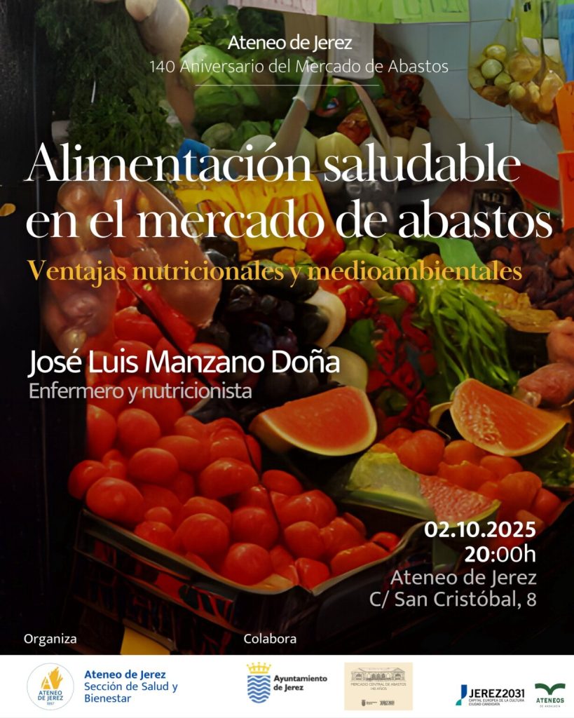 El Ateneo de Jerez organiza este jueves 2 de octubre a las 19:30 horas la conferencia “Alimentación saludable en el Mercado Central de Abastos”, en el marco de las actividades conmemorativas del 140 aniversario de la apertura del Mercado Central de la ciudad. La charla tendrá lugar en la sede del Ateneo, en la calle San Cristóbal nº 8, y la entrada será libre hasta completar aforo.