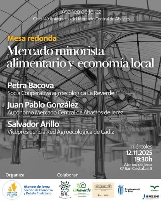 El encuentro, que se celebra el 12 de noviembre en la sede del Ateneo, reunirá a representantes del sector agroecológico y del comercio tradicional para analizar el impacto económico y social de los mercados minoristas en Jerez.