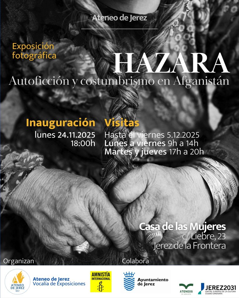El Ateneo de Jerez, en colaboración con Amnistía Internacional, presenta la exposición “HAZARA: Autoficción y costumbrismo en Afganistán”, una muestra fotográfica que llega por primera vez a la ciudad y que forma parte del programa municipal organizado con motivo del 25N, Día Internacional contra la Violencia hacia las Mujeres. La exposición invita a observar de manera directa la realidad que afrontan las mujeres bajo el régimen talibán a través de imágenes íntimas y testimoniales.