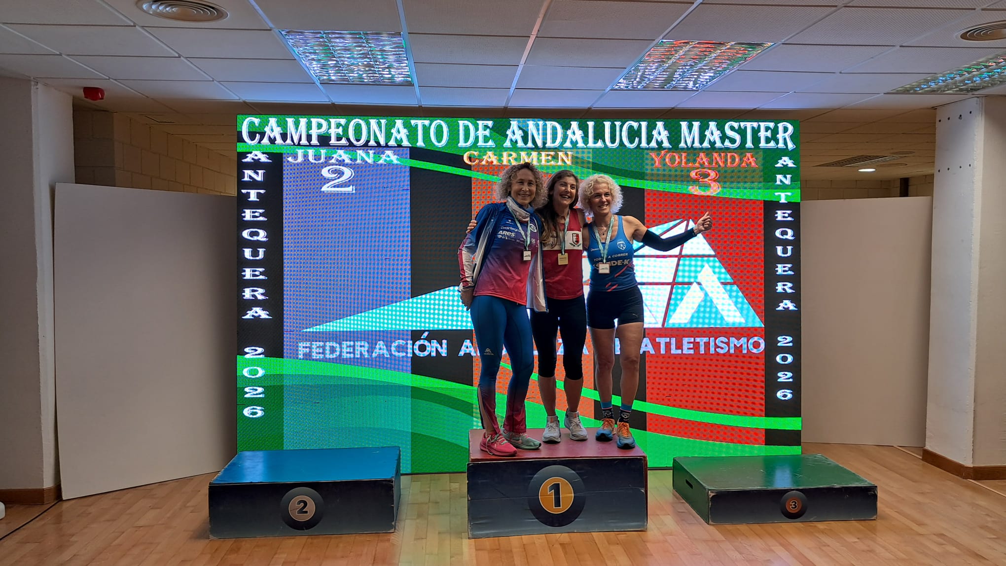 El Atletismo Bahía de Cádiz logra ocho medallas en el Campeonato de Andalucía Máster Short Track celebrado en Antequera, con dos oros individuales y varios podios en pruebas de velocidad, salto y lanzamiento.