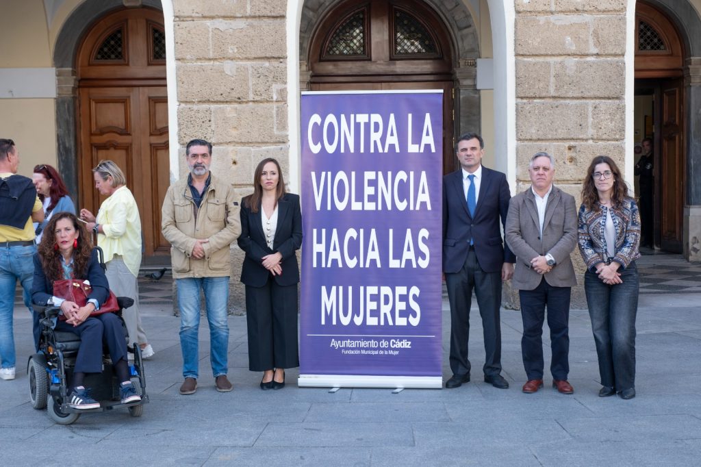 El Ayuntamiento de Cádiz ha guardado este jueves un minuto de silencio frente a las puertas del Consistorio en señal de repulsa por el asesinato de una mujer de 49 años, víctima de violencia de género en la provincia de Zaragoza.