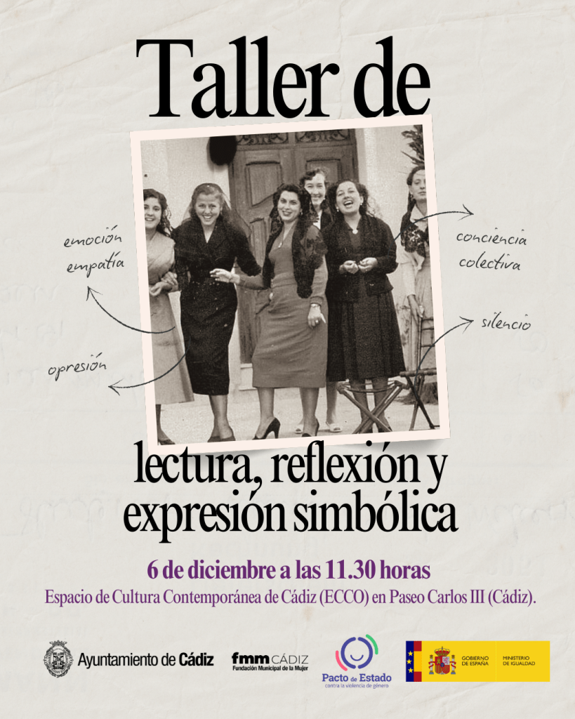 La Fundación Municipal de la Mujer del Ayuntamiento de Cádiz ha puesto en marcha un taller de lectura contra la violencia de género que se celebrará el sábado 6 de diciembre a las 11:30 horas en el Espacio de Creación Contemporánea de Cádiz (ECCO). La actividad forma parte de la programación municipal vinculada a la campaña “16 días para recordar que son 365 luchando contra la violencia de género”.