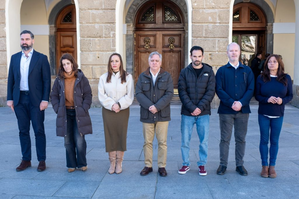 Representantes municipales y trabajadores del Ayuntamiento han participado en la concentración silenciosa ante la fachada principal del edificio municipal. El acto se ha desarrollado sin intervenciones públicas y ha concluido tras el minuto de recogimiento.