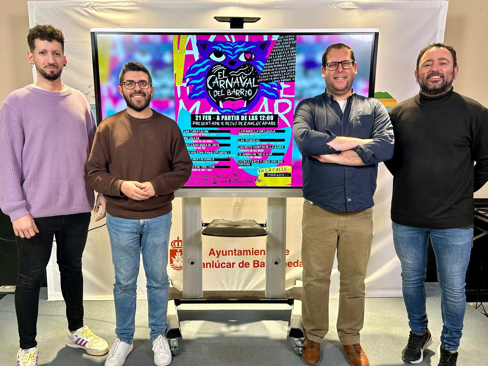El evento está organizado por el colectivo Los Astronautas y la Asociación Juvenil Cultural Carnavalesca ‘La Caprichosa’, con la colaboración del Ayuntamiento de Sanlúcar y el patrocinio de varias firmas comerciales. La presentación del cartel y del programa se ha llevado a cabo este jueves con la presencia del delegado municipal de Fiestas, Narciso Vital, junto a representantes de la organización y participantes.