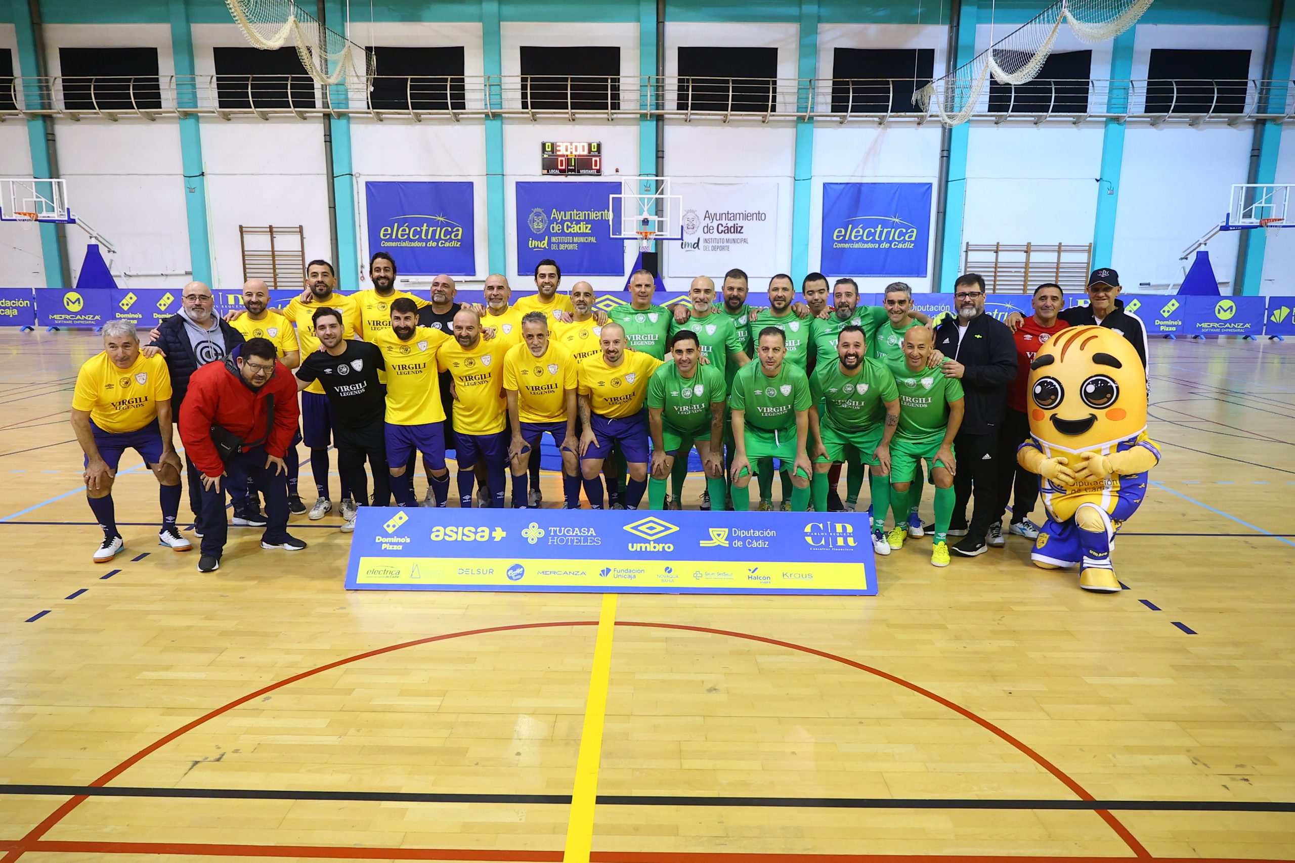 El evento reunió por primera vez sobre la pista a una selección de antiguos jugadores del CD Virgili Cádiz, en un partido que sirvió de reencuentro entre distintas generaciones vinculadas a la historia del club. La iniciativa contó con la colaboración del Instituto Municipal de Deportes del Ayuntamiento de Cádiz y el patrocinio exclusivo de Tugasa Hoteles.