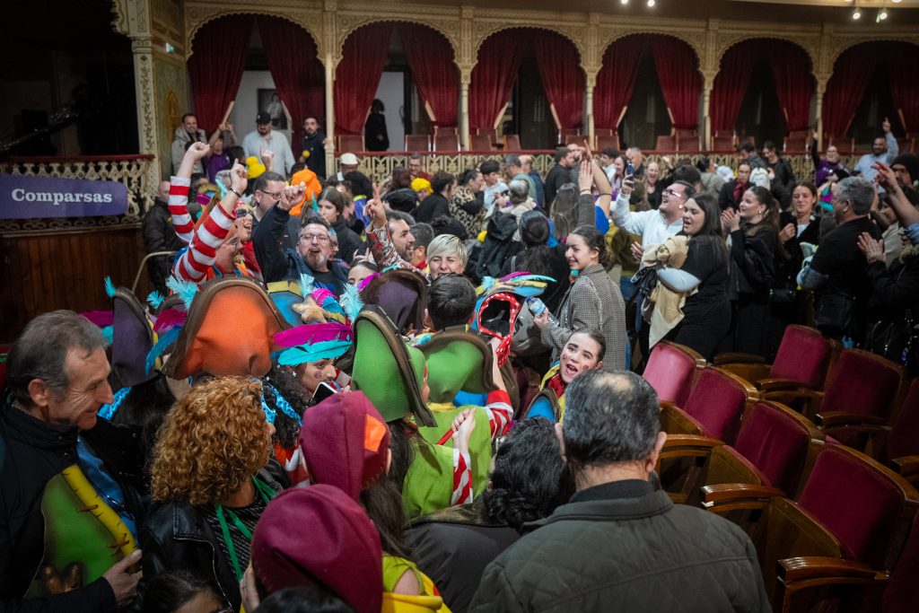 La modalidad de comparsas coronó como ganadora a Las Guasnías, que alcanzaron el primer premio tras una Gran Final muy sólida. El segundo premio fue para El Hilo Rojo, seguido de Las Marmotas en tercera posición y Las Traviesas en cuarta. El primer accésit recayó en Los Granujas.