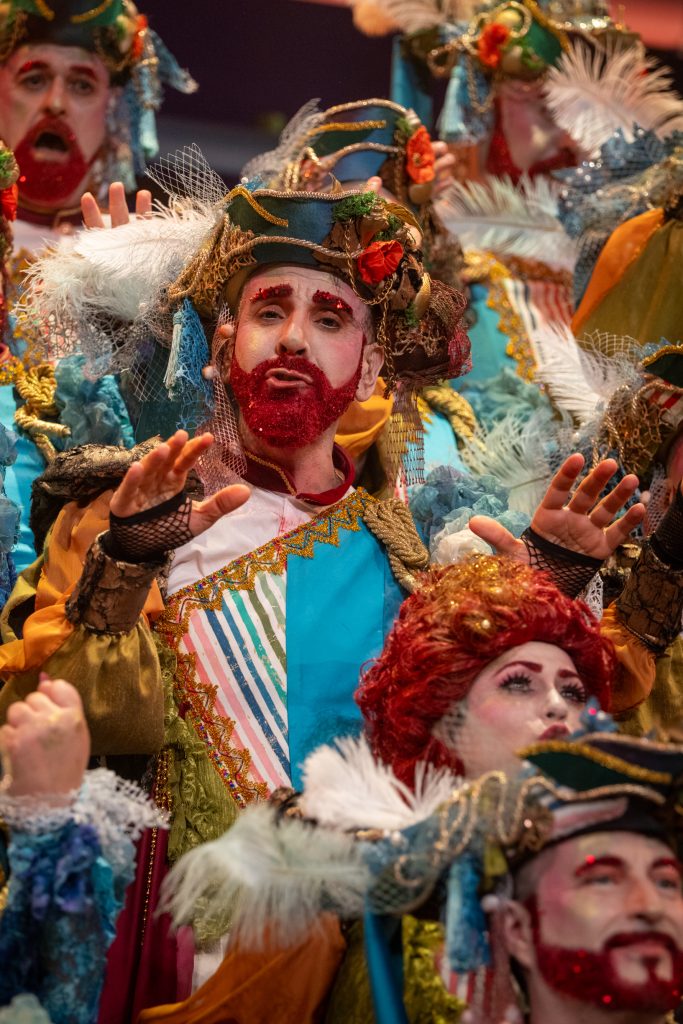 El primer tango adquirió carácter de efeméride y homenaje al cumplirse 50 años del fallecimiento de Paco Alba, fundador de la modalidad y figura axial del Carnaval moderno. La letra recordó la valentía de innovar sin renunciar a la raíz, vinculando el legado del brujo a la obligación contemporánea de defender el talento y la diferencia. La falseta incluyó un guiño a ‘Los sarracenos’ y el desarrollo musical, lejos del patrón Rivero de los últimos años, buscó un fraseo más clásico. La interpretación fue sobresaliente en afinación, empaste y control respiratorio, tres rasgos distintivos de la formación desde hace varias ediciones.