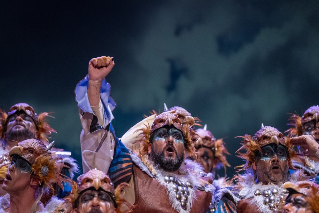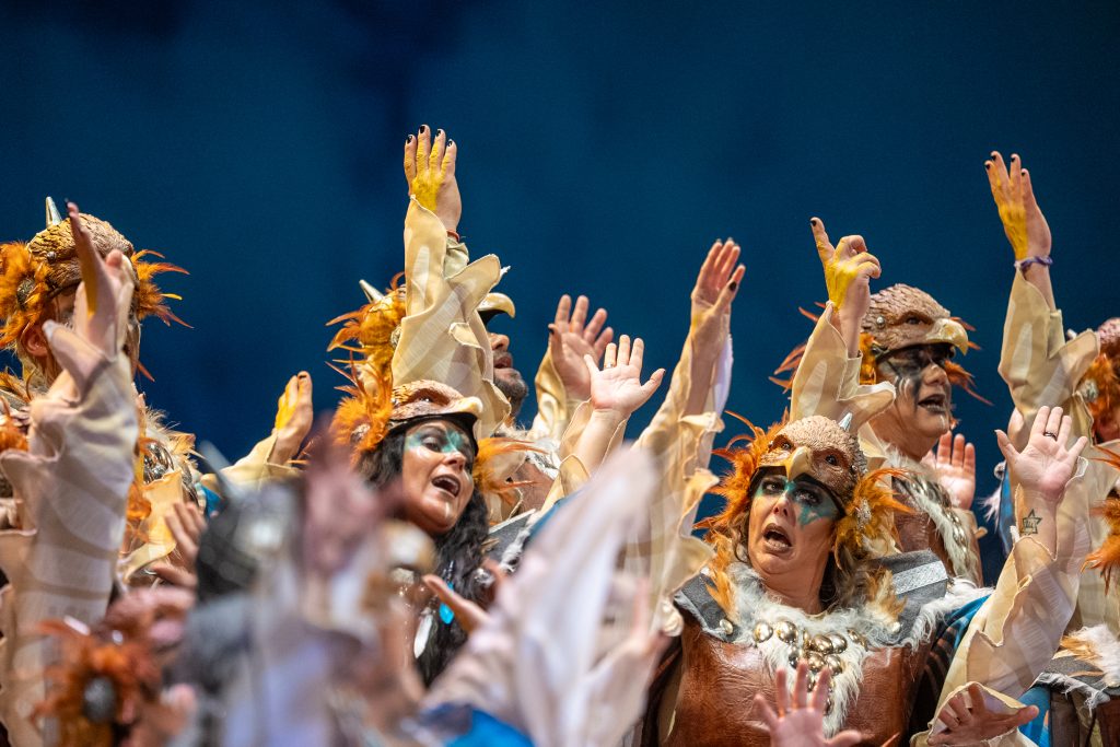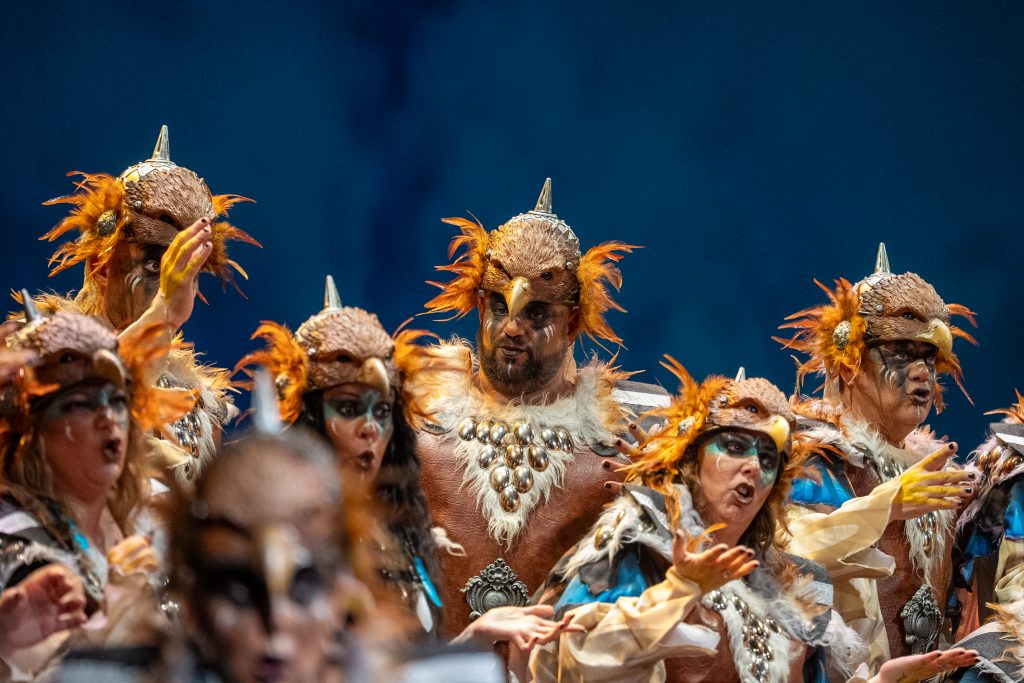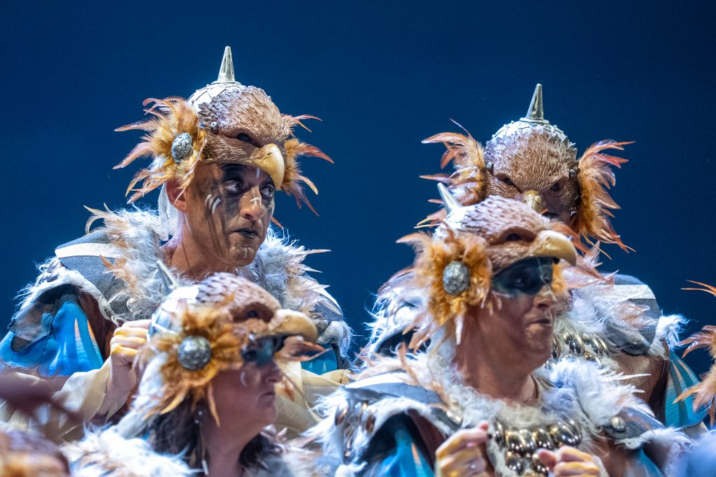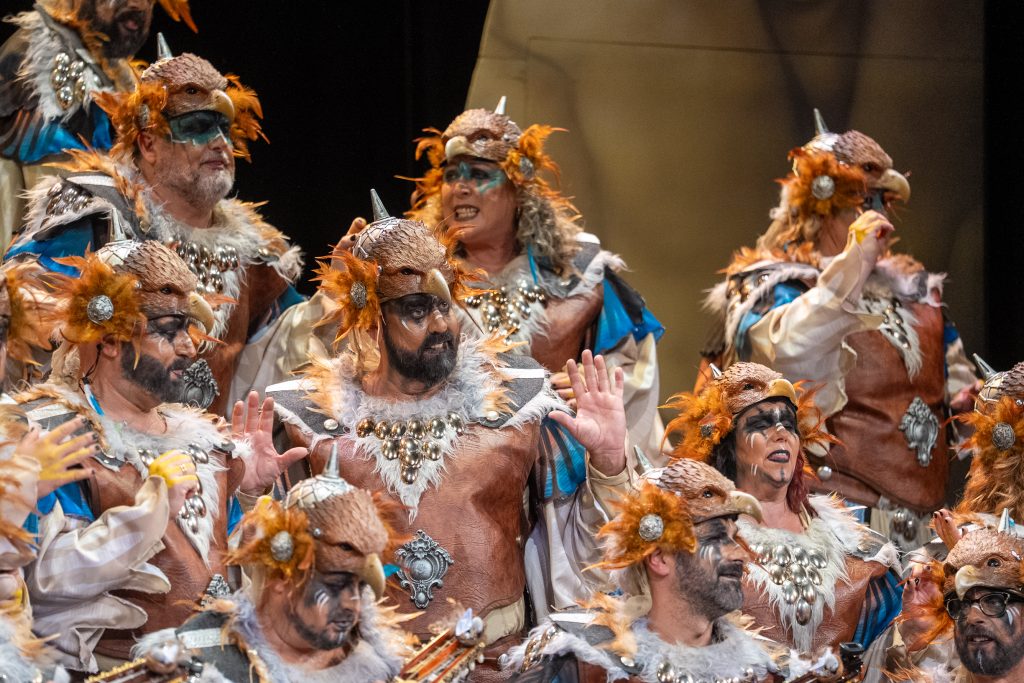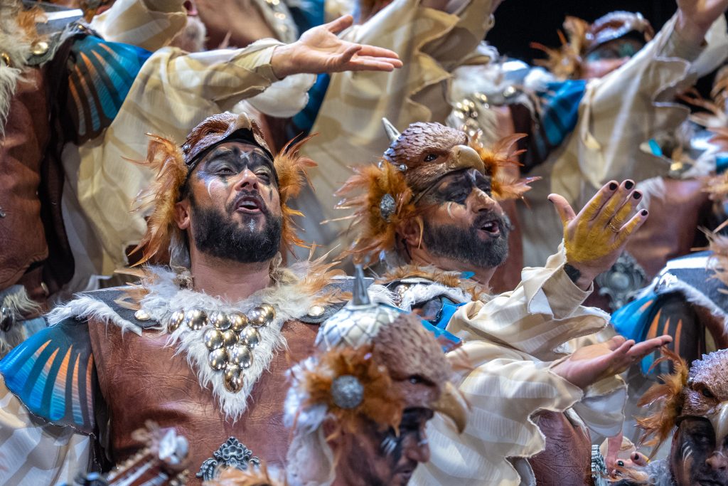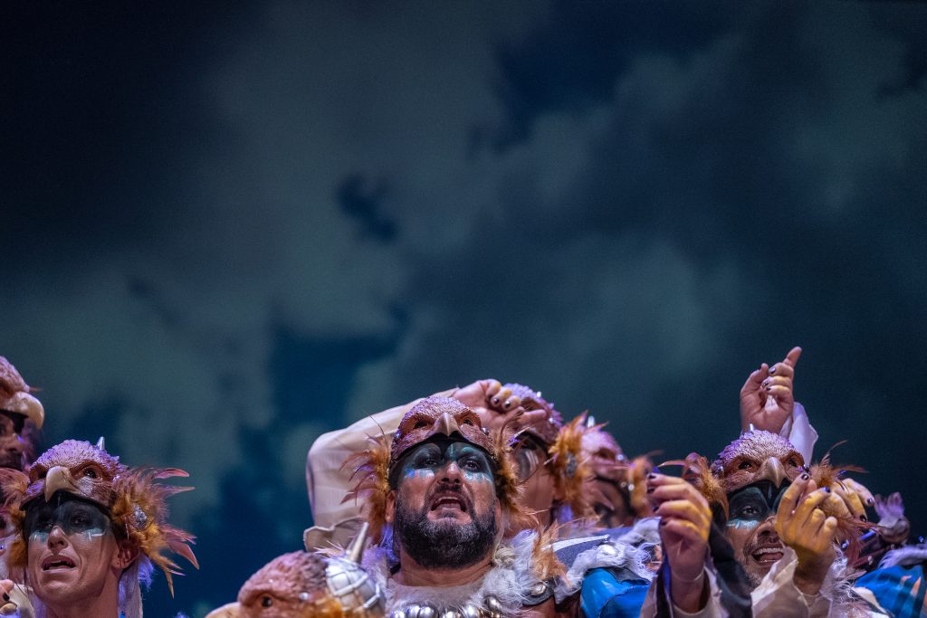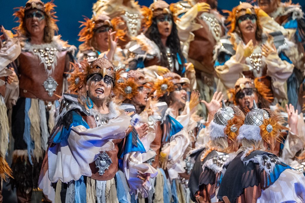 El tipo sitúa a la agrupación como aves rapaces que sobrevuelan su territorio para defender su nido y denunciar las injusticias que se producen en la tierra. Desde esa óptica aérea, el coro construye un discurso que contrapone la libertad del cielo con la violencia, la ambición y la destrucción generadas por el ser humano. La presentación resulta rotunda y bien armada, con una entrada potente que deja clara desde el primer momento la intención reivindicativa del repertorio y el sentido simbólico del planteamiento.