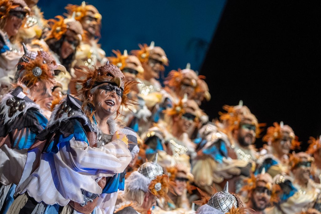 El coro de San Fernando ‘El reino de los cielos’ abrió la función de cuartos de final del COAC 2026 en el Gran Teatro Falla con una actuación que confirmó la progresión del grupo respecto a su estreno en preliminares. La propuesta, con letra de Victoriano Cano Pérez y Francisco Javier Sevilla Pecci, música de Luis Alfonso Betanzos Bernal y dirección de José Manuel Betanzos Bernal, volvió a apoyarse en una idea clara y reconocible que utiliza el vuelo de las águilas como metáfora para observar la realidad desde una perspectiva elevada y crítica.