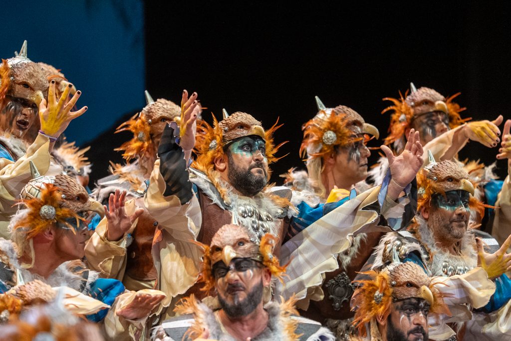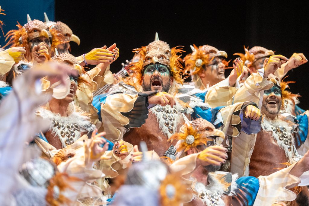 El popurrí desarrolla el universo de aves rapaces, buitres y pajarracos como reflejo de un mundo dominado por la hipocresía, la ambición y la desigualdad. La selección musical es acertada y el discurso mantiene coherencia con el resto del repertorio, aunque el exceso de percusión en algunos tramos dificulta la vocalización y provoca que el mensaje se diluya en momentos concretos. Aun así, el conjunto logra cerrar la actuación con una sensación más sólida que en su primer pase.