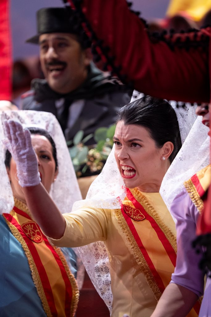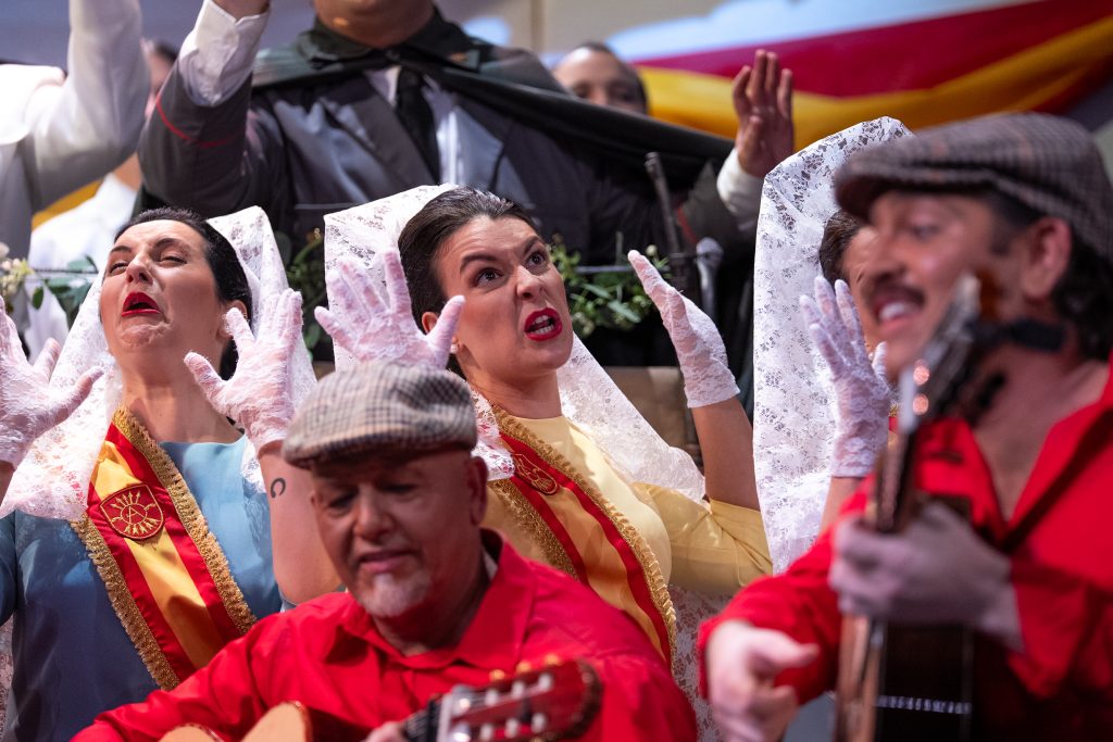 En el apartado interpretativo, el coro muestra una notable mejora respecto a pases anteriores. El grupo canta con seguridad, empaste y un timbre muy reconocible, destacando la conjunción entre voces femeninas y masculinas. La escena se domina con solvencia y el mensaje llega con claridad, apoyado en una dirección firme y un montaje muy trabajado.
