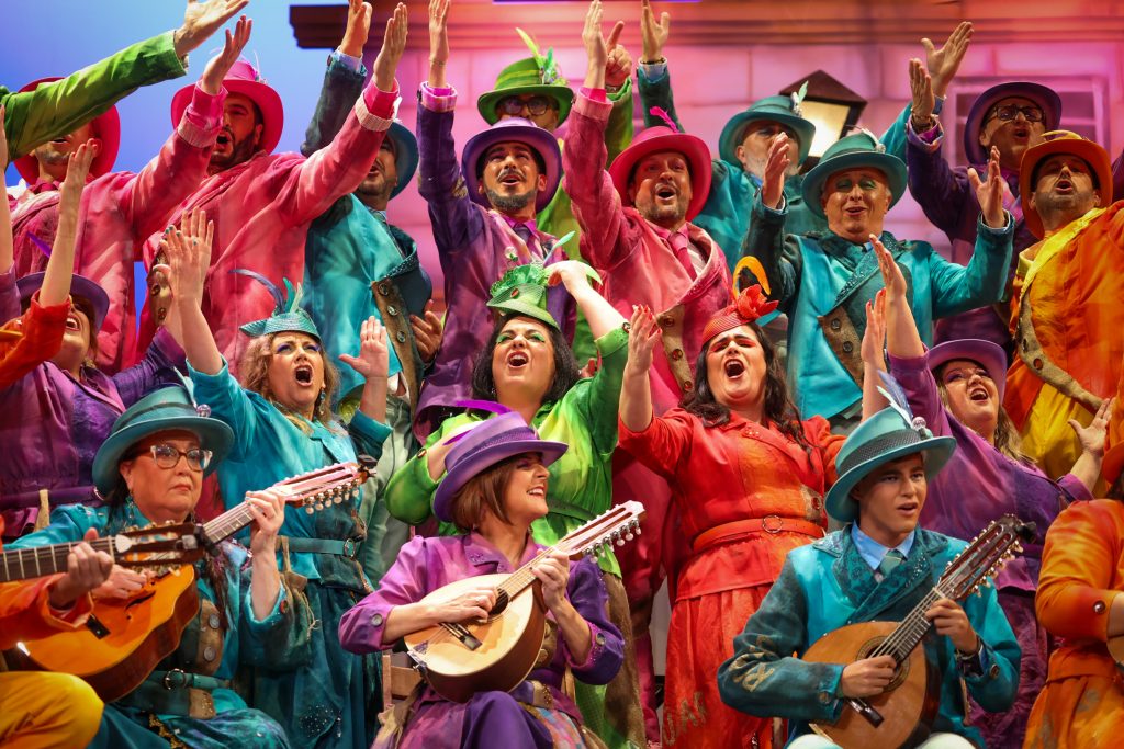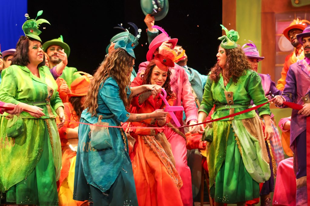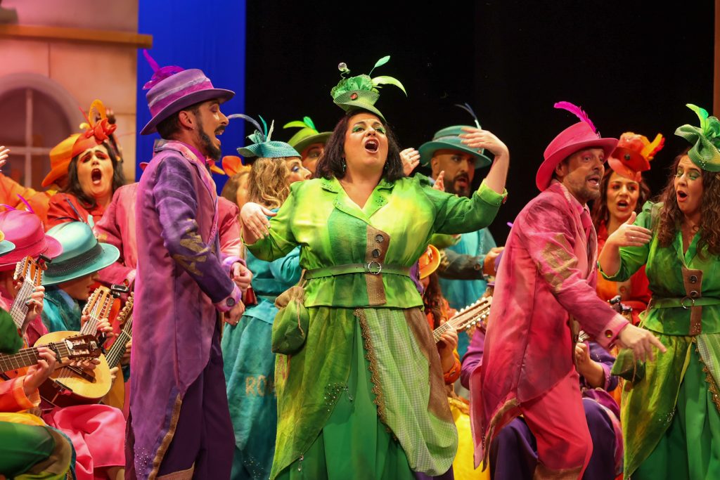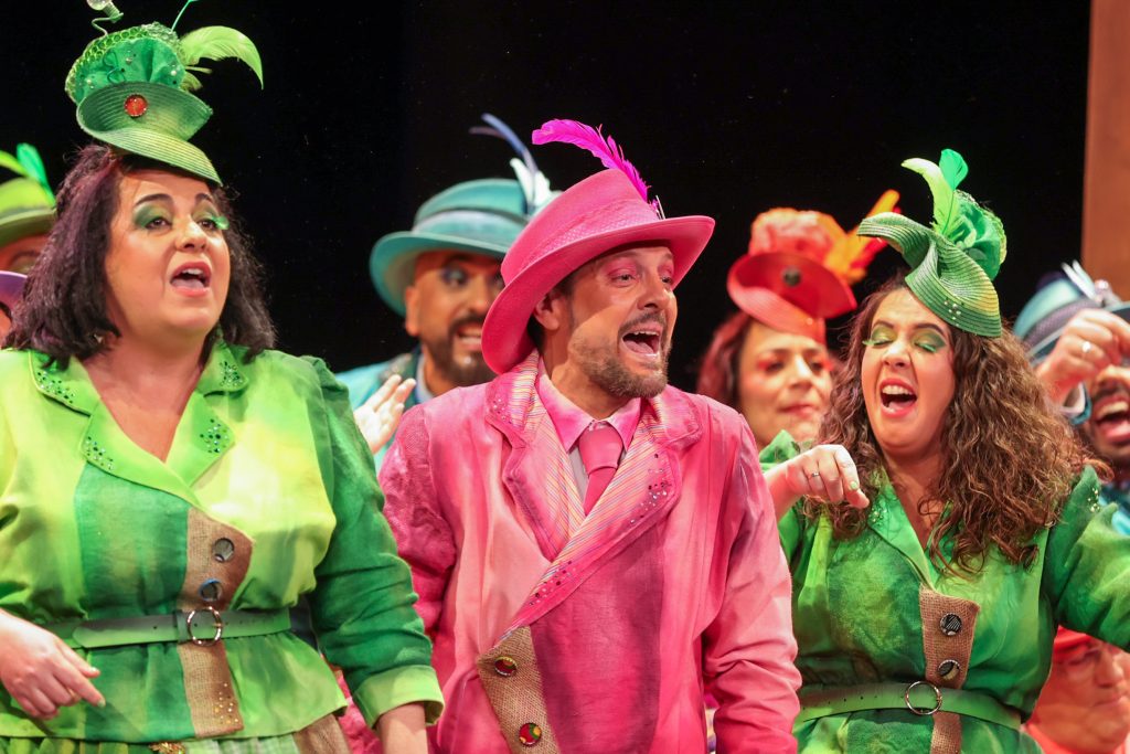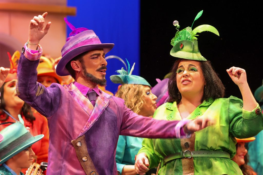 El planteamiento del tipo fue claro desde el alzarse del telón. Sobre el escenario aparecía una ciudad idealizada: banco convertido en conservatorio, ayuntamiento sustituido por biblioteca, escuela pública por delante de la privada. No había dinero, ni gobernantes, ni desigualdad. La presentación funcionó visualmente, con un punto infantil y vitalista, y asentó la idea matriz: una ciudad sin jerarquías en la que “todos y todas son iguales”. El coro cantó con buena presencia escénica, conjunción vocal y afinación ordenada, confirmando que el grupo conserva el perfil técnico que dejó en la edición anterior.