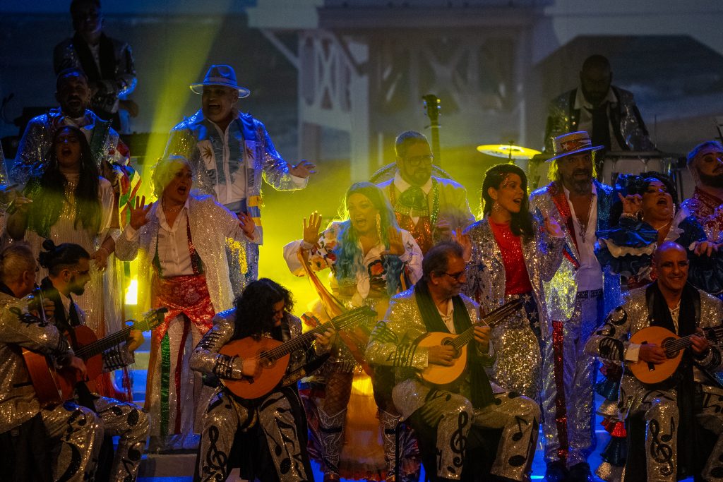 El coro gaditano ‘La Viña del Mar’, obra de Jesús Monje, compareció en el Gran Teatro Falla con un concepto centrado en la traslación del Festival de Viña del Mar —referente musical latinoamericano— al terreno del Carnaval de Cádiz. La tesis planteaba la vida como gran festival global, con música, coreografía y emoción como eje escénico. El planteamiento fue ambicioso en lo visual, expansivo en lo musical y extremadamente orientado al espectáculo, pero sus consecuencias sobre la esencia de la modalidad generaron un pase conflictivo desde el punto de vista coral y textual.