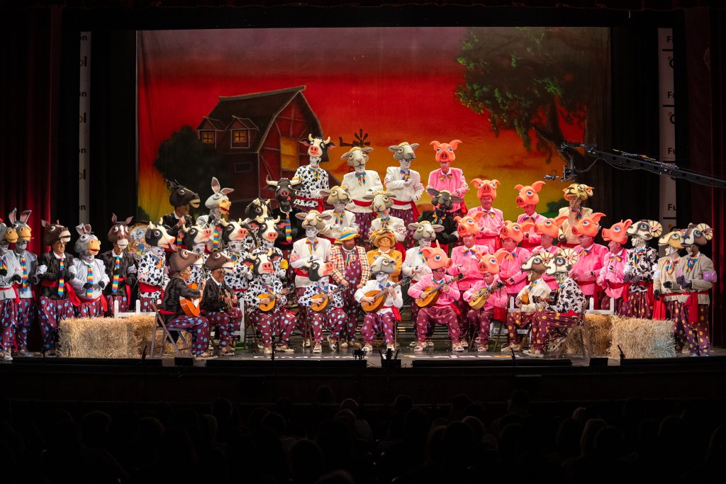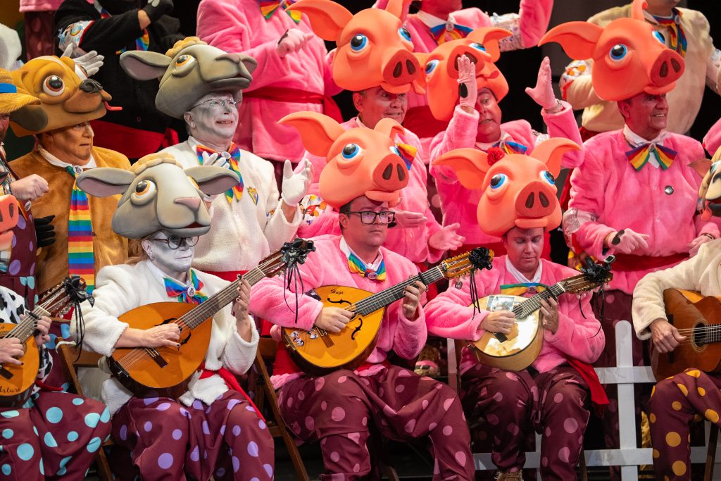 El tipo sitúa a los componentes como animales de granja, con Valdés ejerciendo de granjero, en una estética reconocible y simpática que vuelve a jugar con un imaginario infantil y naïf. La llegada al Falla marcada por el temporal, con referencias al pasacalles y el uso de manguitos, se integra como guiño circunstancial dentro del planteamiento general. Sin embargo, el concepto no presenta una evolución clara respecto al primer pase, manteniéndose en un terreno muy similar tanto en estructura como en intención.