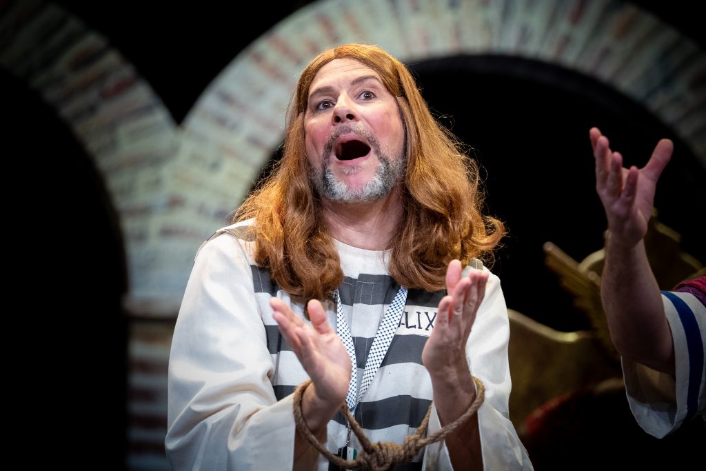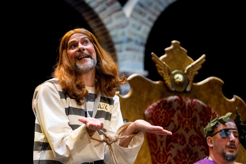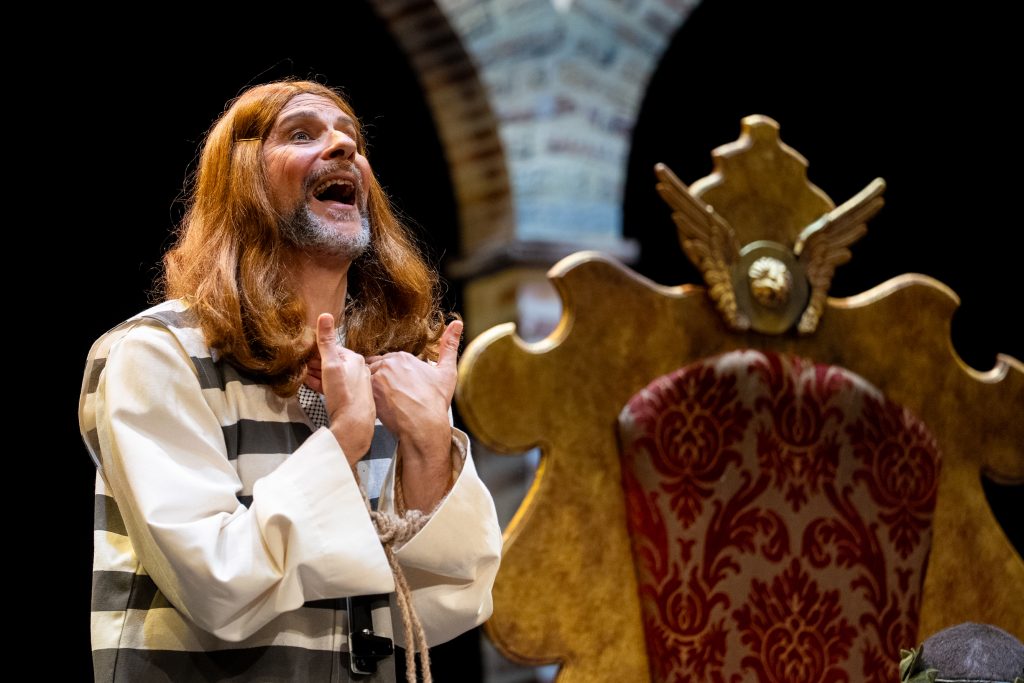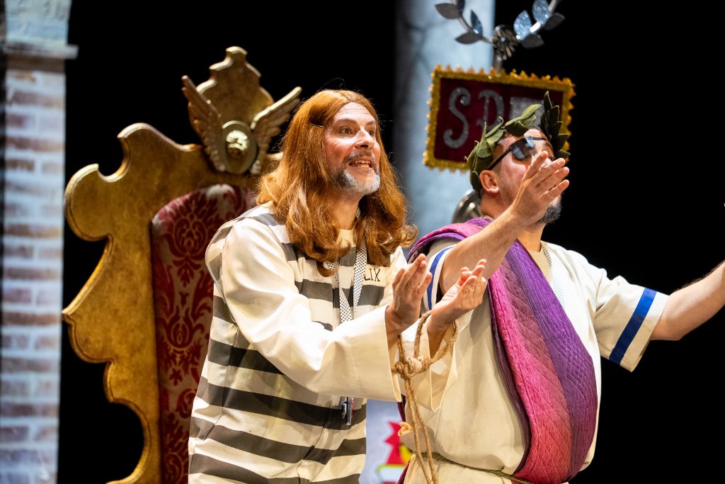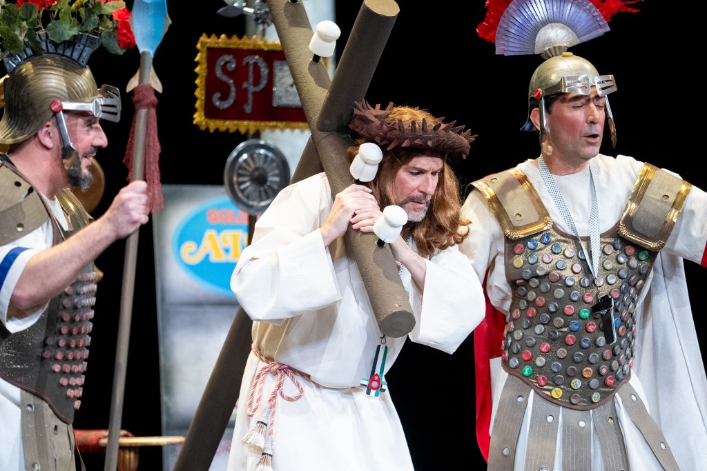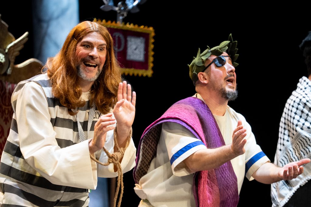Uno de los momentos más destacados llega con la acusación del abogado cristiano, que convierte a Jesús en un personaje incómodo por su defensa de los pobres y su cuestionamiento del poder. La escena, lejos de buscar el golpe fácil, construye una sátira sostenida que provoca la risa desde la incomodidad y la reflexión. El veredicto popular, resuelto con la participación del público, refuerza ese juego metateatral tan propio de la modalidad y conecta directamente con el concurso como espacio de juicio y sentencia.