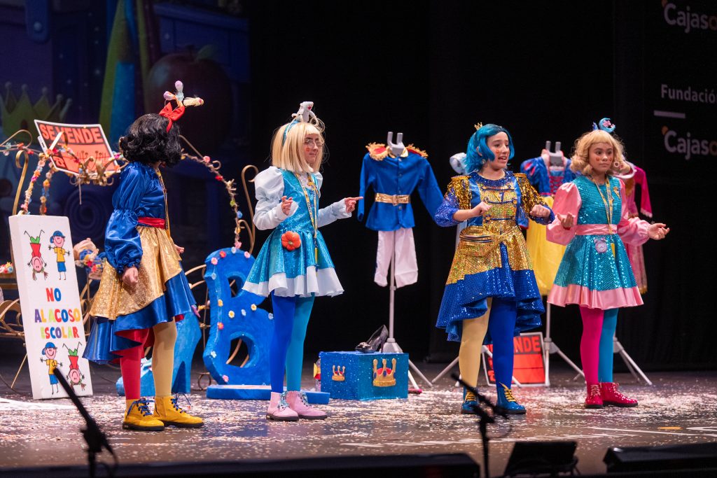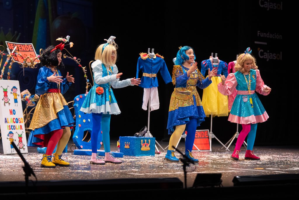 El cuarteto infantil de Cádiz reinterpretó cuentos clásicos con humor, mensaje y ritmo teatral, consolidando su presencia en la cantera del COAC 2026 con una propuesta de cuatro intérpretes en escena.