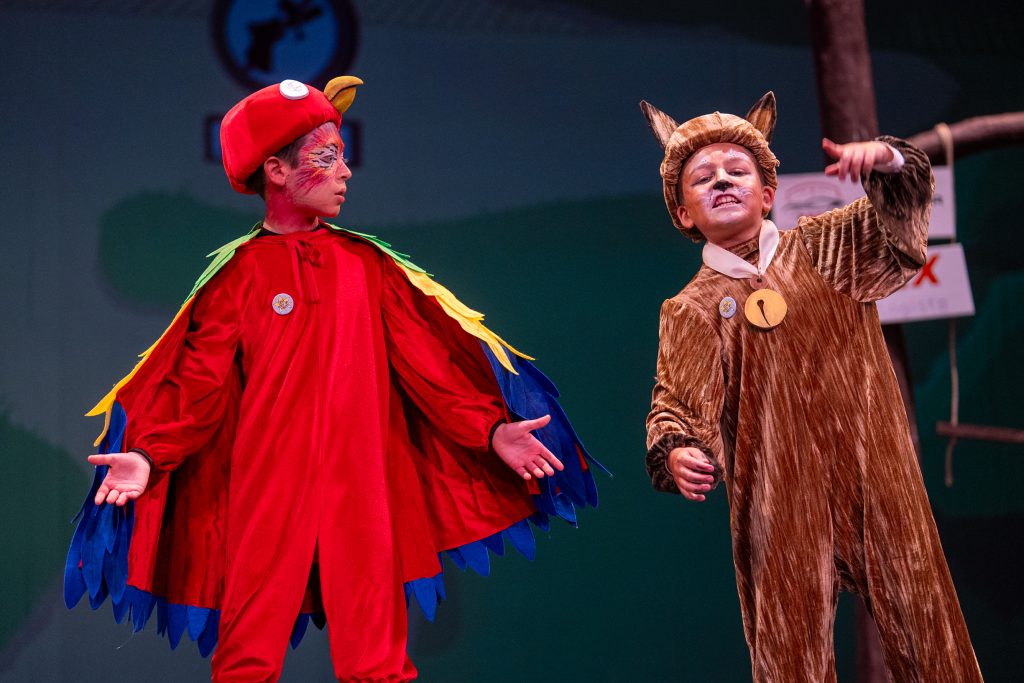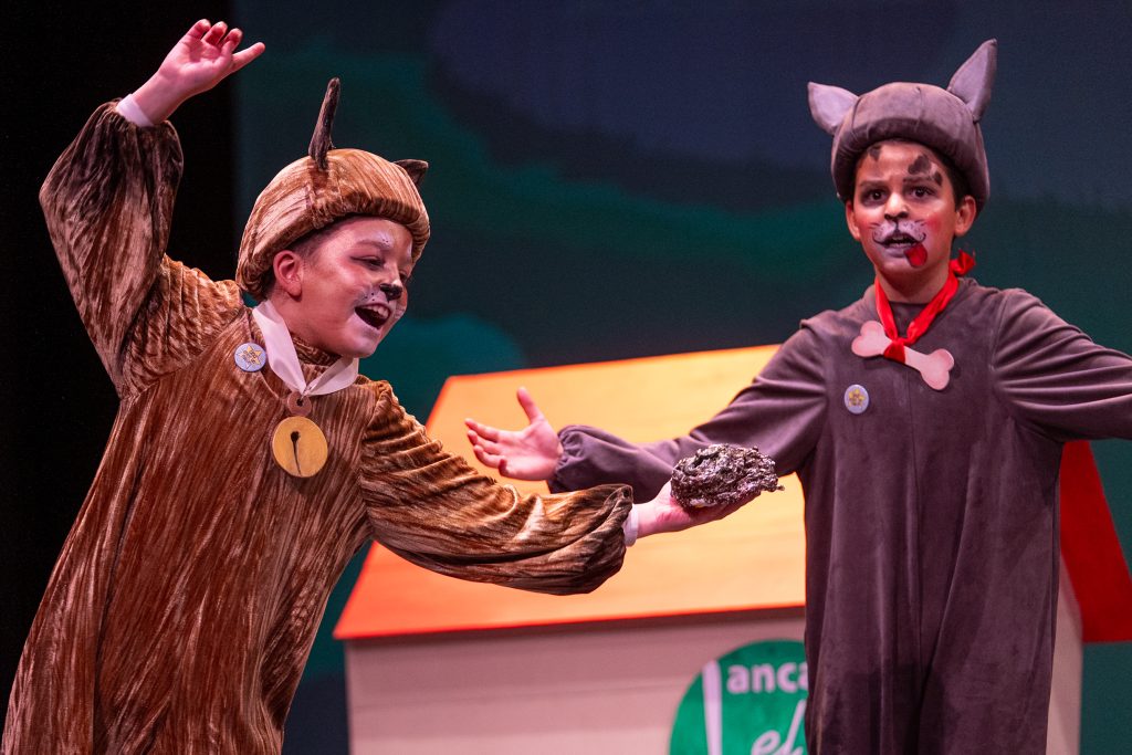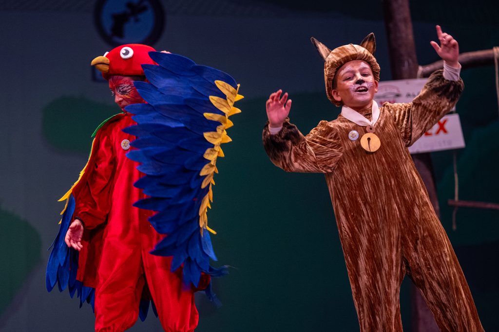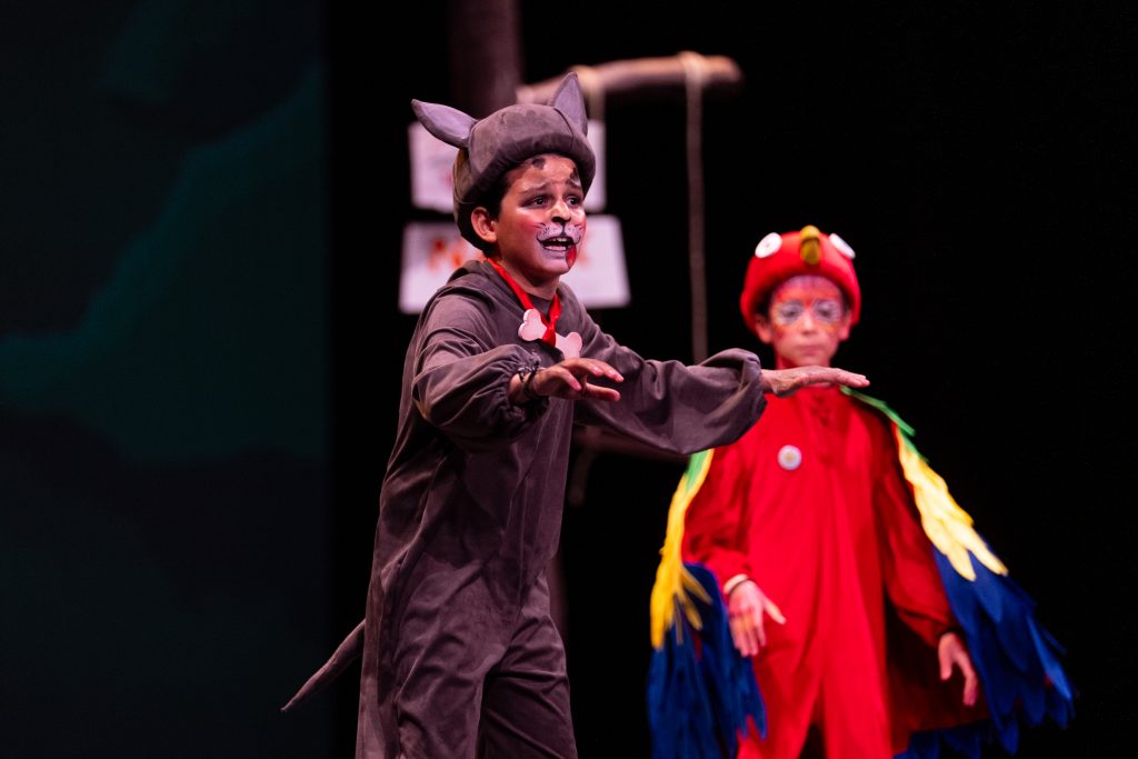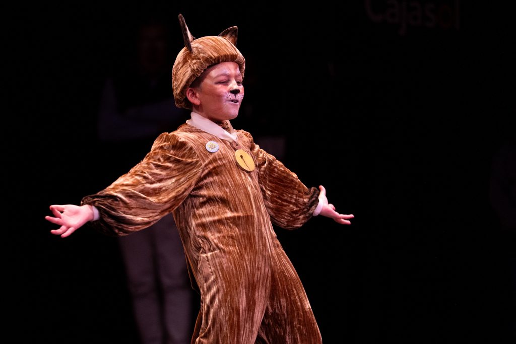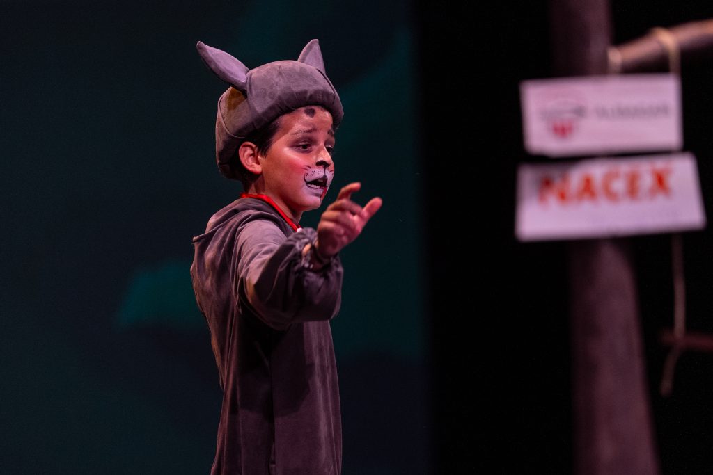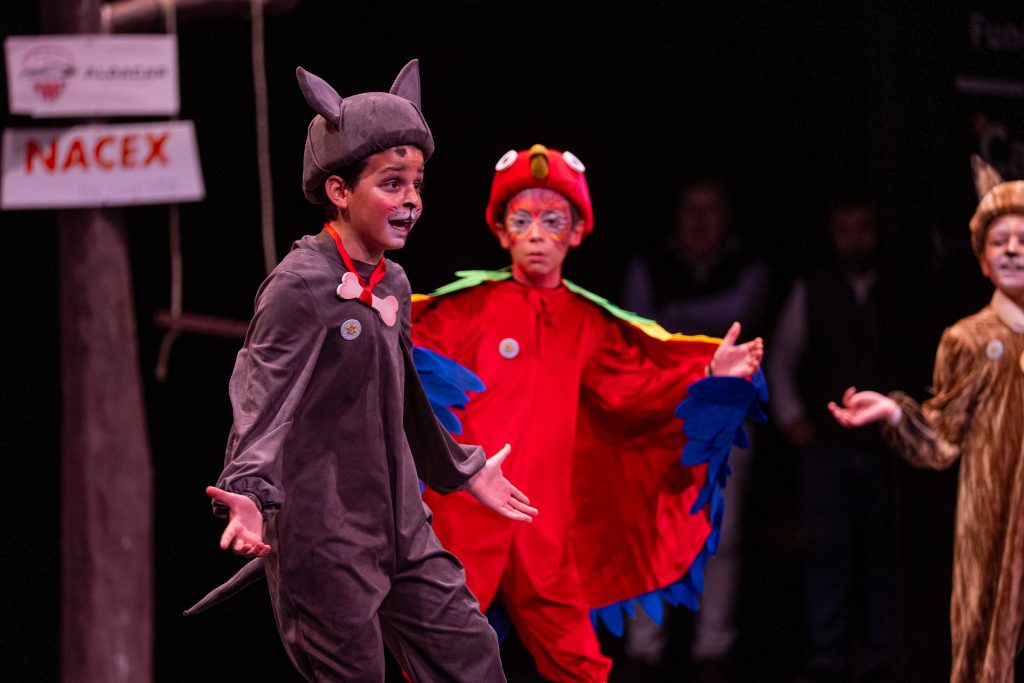 En términos de interpretación, el grupo mostró claridad en la emisión de texto, situándose en un nivel adecuado para la edad. Se observaron momentos de ajuste natural en la proyección de voz, resueltos mediante repetición humorística del diálogo, recurso habitual en cuartetos infantiles para sostener ritmo y comprensión. La escenografía sencilla favoreció la movilidad y el reconocimiento de personajes, sin sobrecargar la escena. El conjunto evitó referencias excluyentes o sarcasmos ajenos al universo infantil, manteniendo el registro apto para cantera.