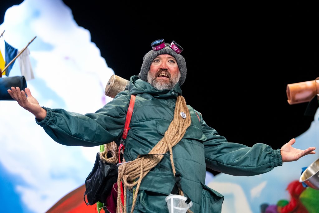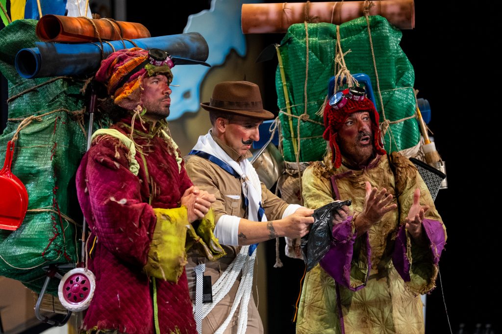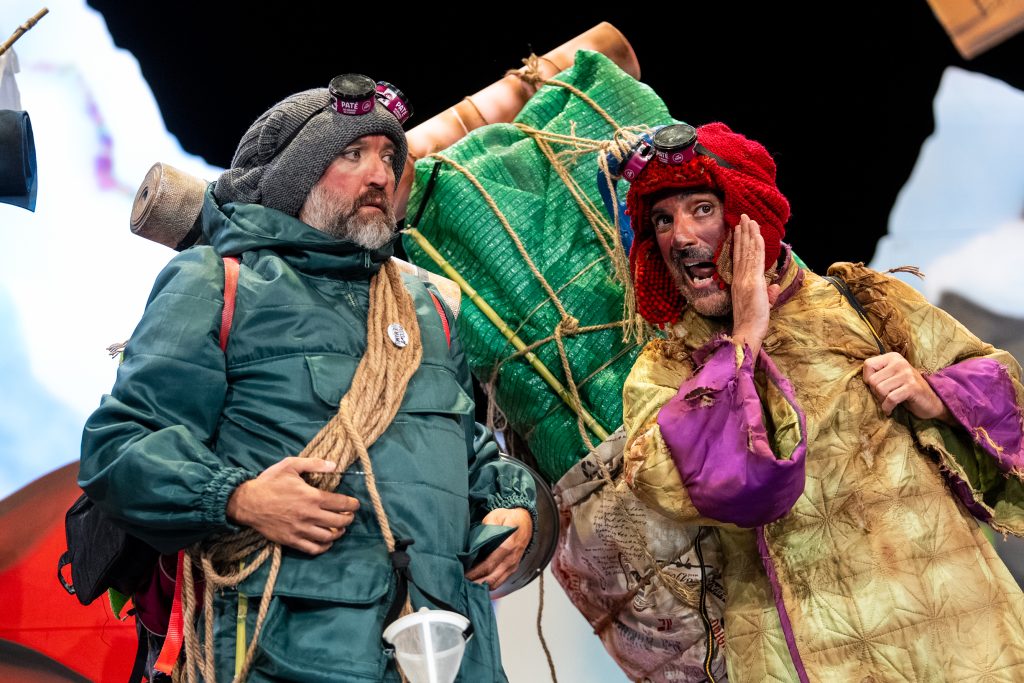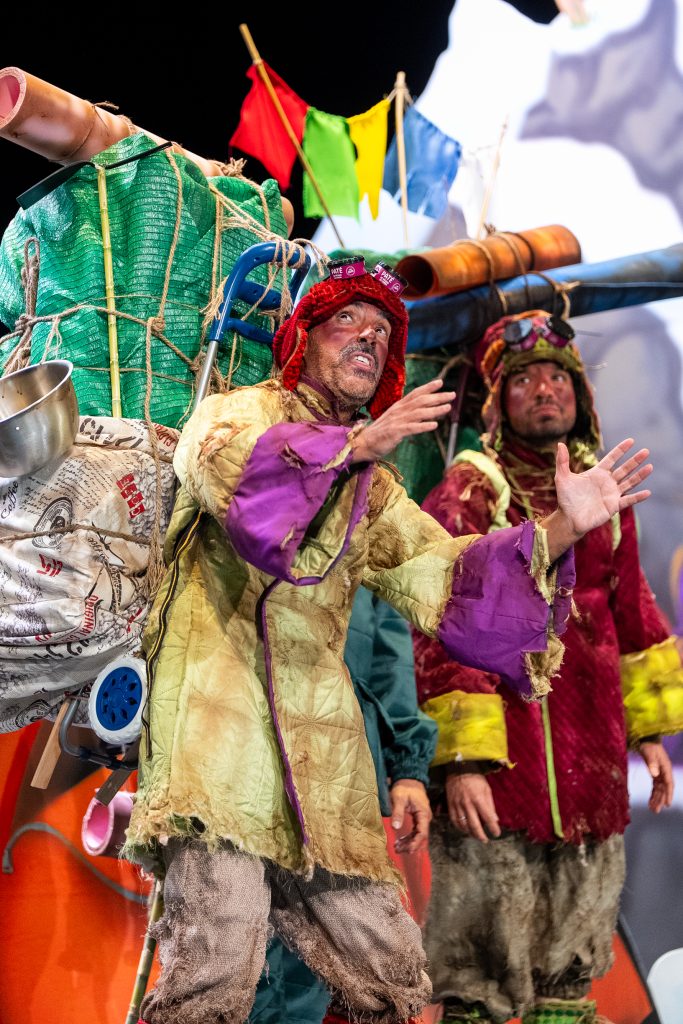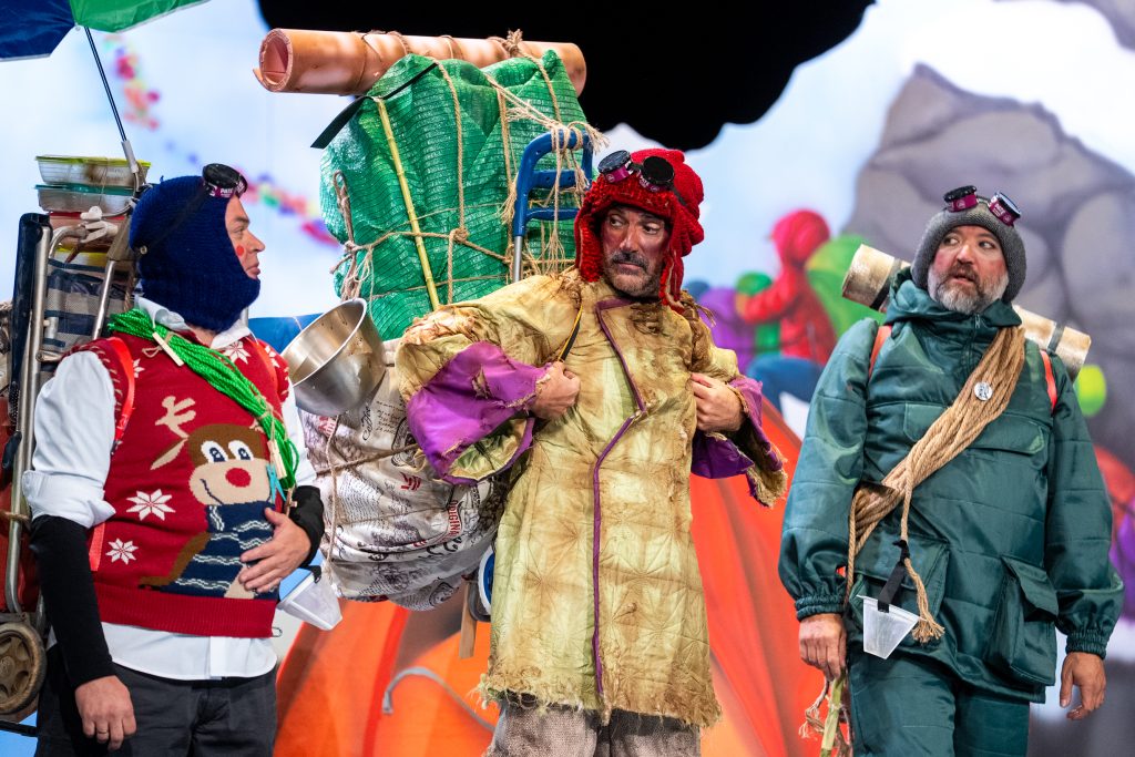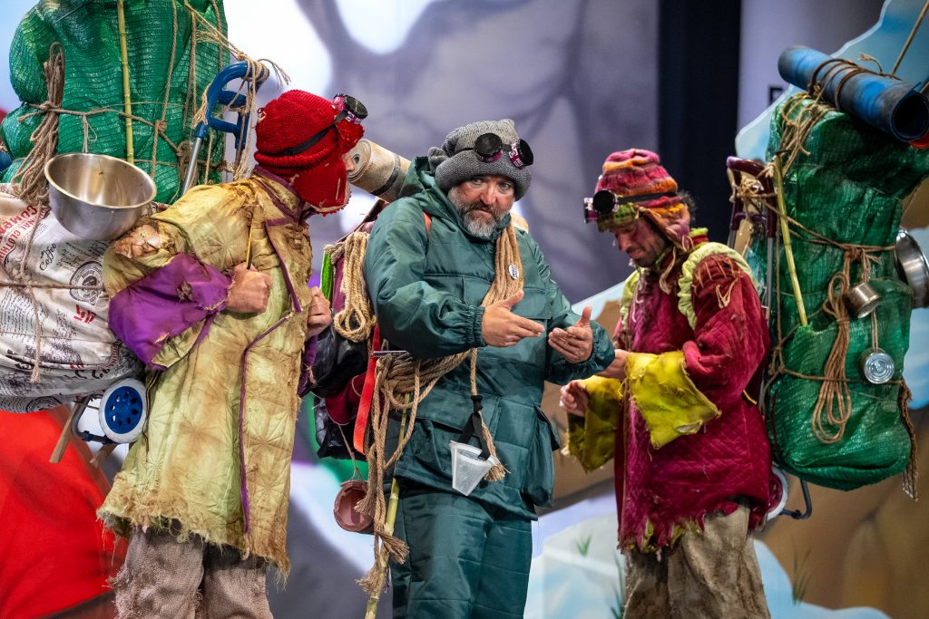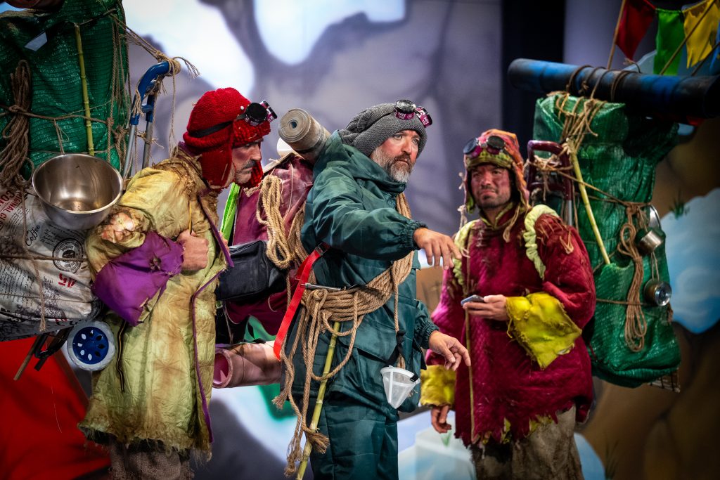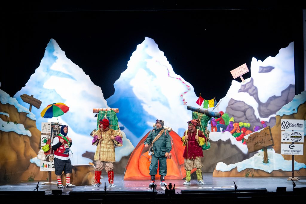 El arranque situó el conflicto central: la masificación. “Si no están preparados, que no vengan”, decía uno de los personajes antes de presentar la montaña como un espacio saturado, alterado por la afluencia de visitantes y por la pérdida del espíritu original del alpinismo. A partir de ahí, el cuarteto desplegó un recorrido en el que convivieron escaladores, sherpas, aspirantes y millonarios en un juego que operaba en dos planos: la literalidad del Himalaya y la lectura paralela sobre el Gran Teatro Falla.