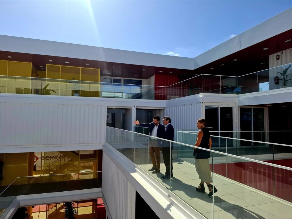 Aldereguía recorrió el edificio de Zona Base Incubazul, una construcción realizada con contenedores marítimos reciclados, inaugurada recientemente y que se convertirá en la sede definitiva de la incubadora. El director general destacó la originalidad y sostenibilidad del espacio, que incluye auditorio, salas de coworking, oficinas, laboratorio tecnológico y áreas comunes para fomentar el networking y el intercambio de experiencias.