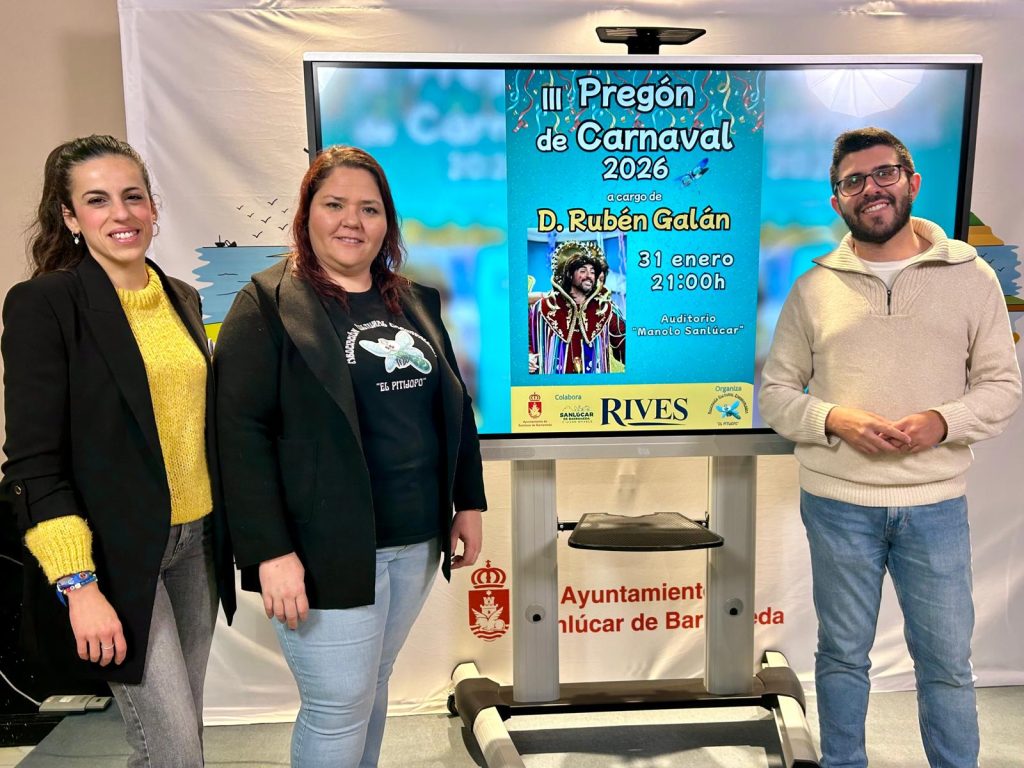 El III Pregón de Carnaval de la asociación El Pitijopo tendrá lugar este sábado en el Auditorio Municipal Manolo Sanlúcar, con el chirigotero sanluqueño Rubén Galán como pregonero.