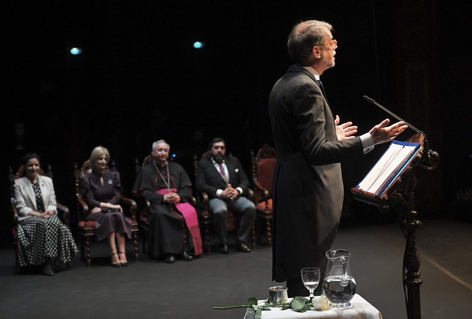 Al acto asistieron la alcaldesa de Jerez, María José García-Pelayo, miembros del Gobierno municipal, el presidente de la Unión de Hermandades, José Manuel García-Cordero, y el obispo de la Diócesis de Asidonia-Jerez, monseñor José Rico Pavés, quienes ocuparon la presidencia situada en el escenario del teatro.