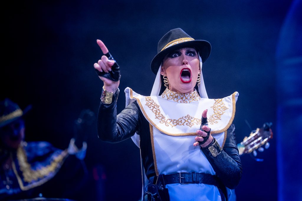 El punto de máxima tensión llegó con la comparsa gaditana ‘La Camorra’, que apostó por una propuesta de tesis y discurso social. La agrupación utilizó la ficción de una banda juvenil en la calle Pasquín para articular un relato sobre violencia institucional, origen social, marginalidad y precariedad. La puesta en escena no buscó la lágrima ni el sentimentalismo, sino la exposición directa del conflicto generacional. La tanda de cuplés trabajó el humor negro en clave política y carnavalesca y el tramo central del repertorio profundizó en relatos individuales con referencias a feminismo, cárcel, Iglesia y juventud. El teatro respondió con una escucha intensa, sin indiferencia y con final ruidoso. Fue la agrupación que más conversación generó en la sala.