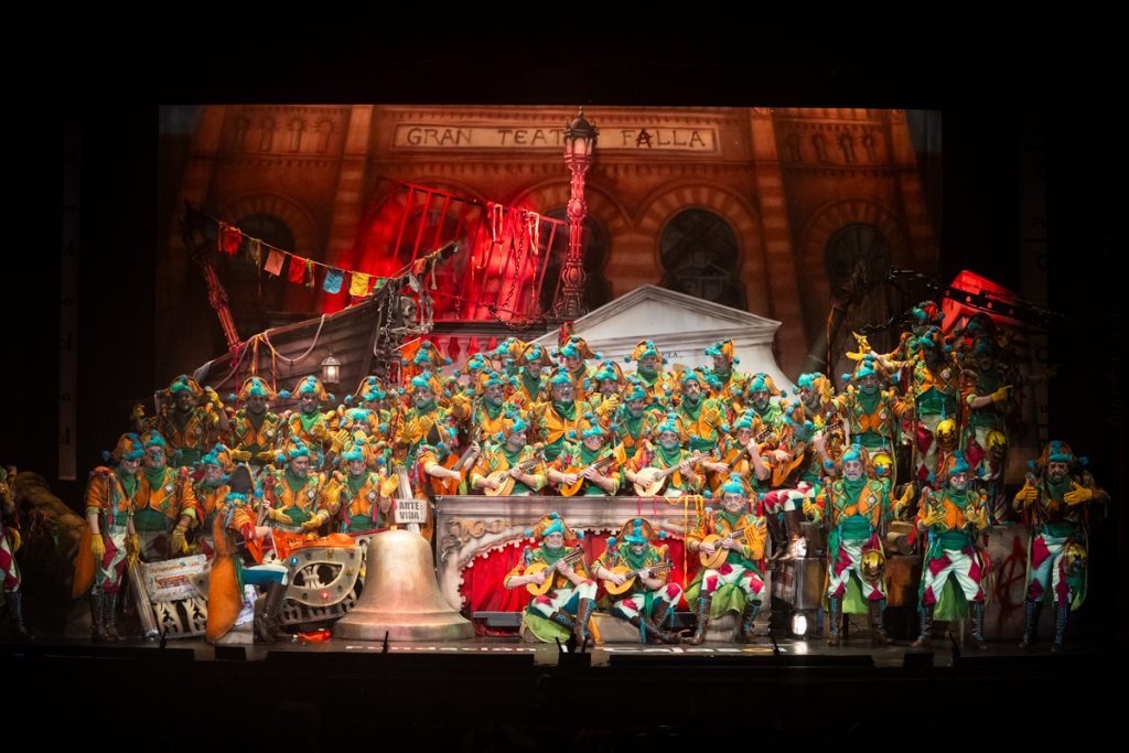 Desde la presentación, el coro dejó clara su intención de convertir la Final en un espacio de reivindicación colectiva. La idea del sindicato de comisiones copleras se materializa en una auténtica barricada carnavalera que irrumpe en el Falla con fuerza vocal y escénica. El arranque funciona como llamada a la unidad de todas las modalidades y sitúa al Carnaval como una industria cultural en conflicto, en defensa de sus derechos y de su identidad. La potencia del conjunto y la composición musical de Julio Pardo generan un impacto inmediato que coloca al público en “modo final” desde el primer acorde.