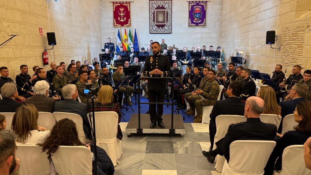 La Unidad de Música ofreció un recital gratuito con presencia del Almirante de la Flota y la alcaldesa de Jerez, destacando la interpretación del pasodoble “Por los Jereles” en memoria del ganadero y rejoneador.
