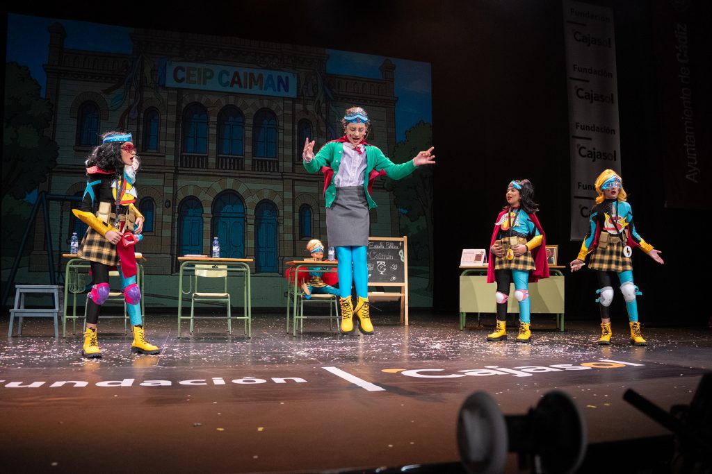 El cuarteto ‘Escuela Pública Caimán’, procedente de Cádiz, compareció en el COAC 2026 con letra de Manuel Torres González, música y dirección de David Mendoza Mateos y representación legal de Dolores Torres González. La agrupación no participó en 2025 bajo esta denominación, aunque los presentadores recordaron que buena parte del equipo obtuvo el tercer premio el pasado año con otra propuesta del mismo entorno creativo.